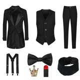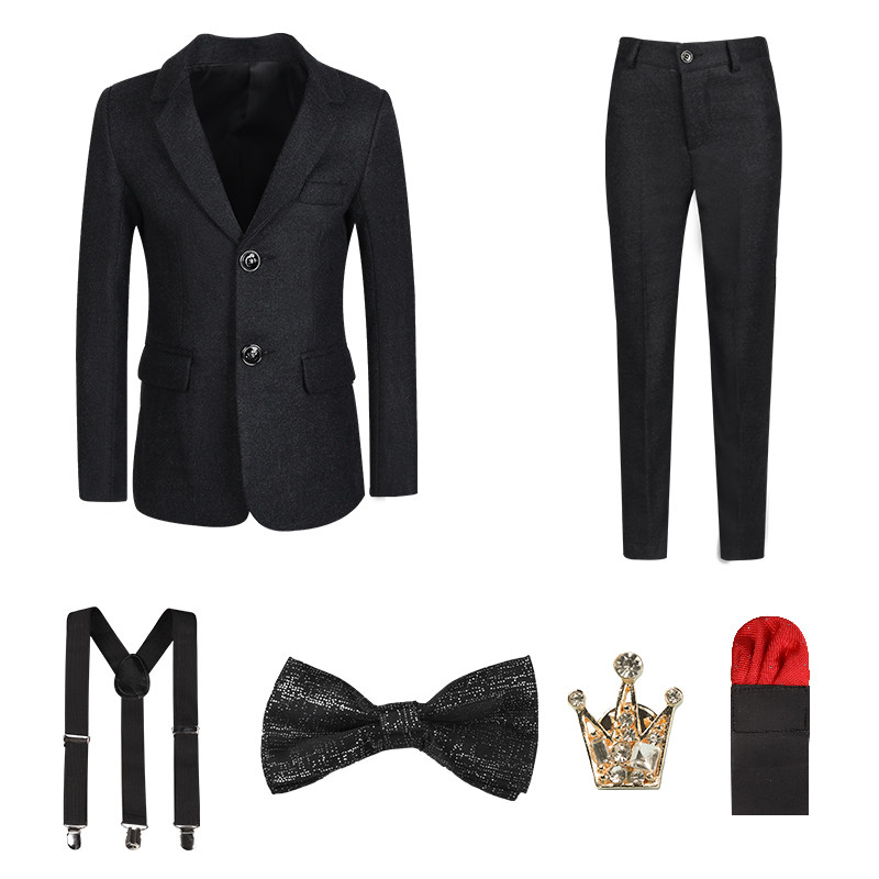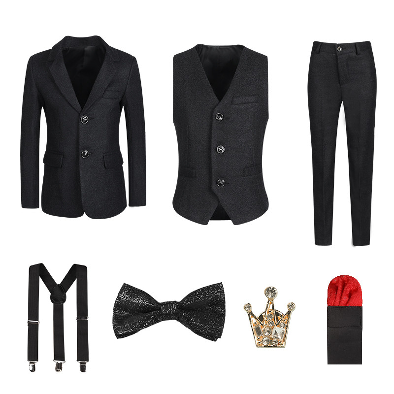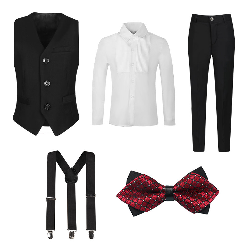 - Комплект, куртка, штаны, жилет, рубашка, подтяжки, галстук-бабочка, брошь, 8 шт