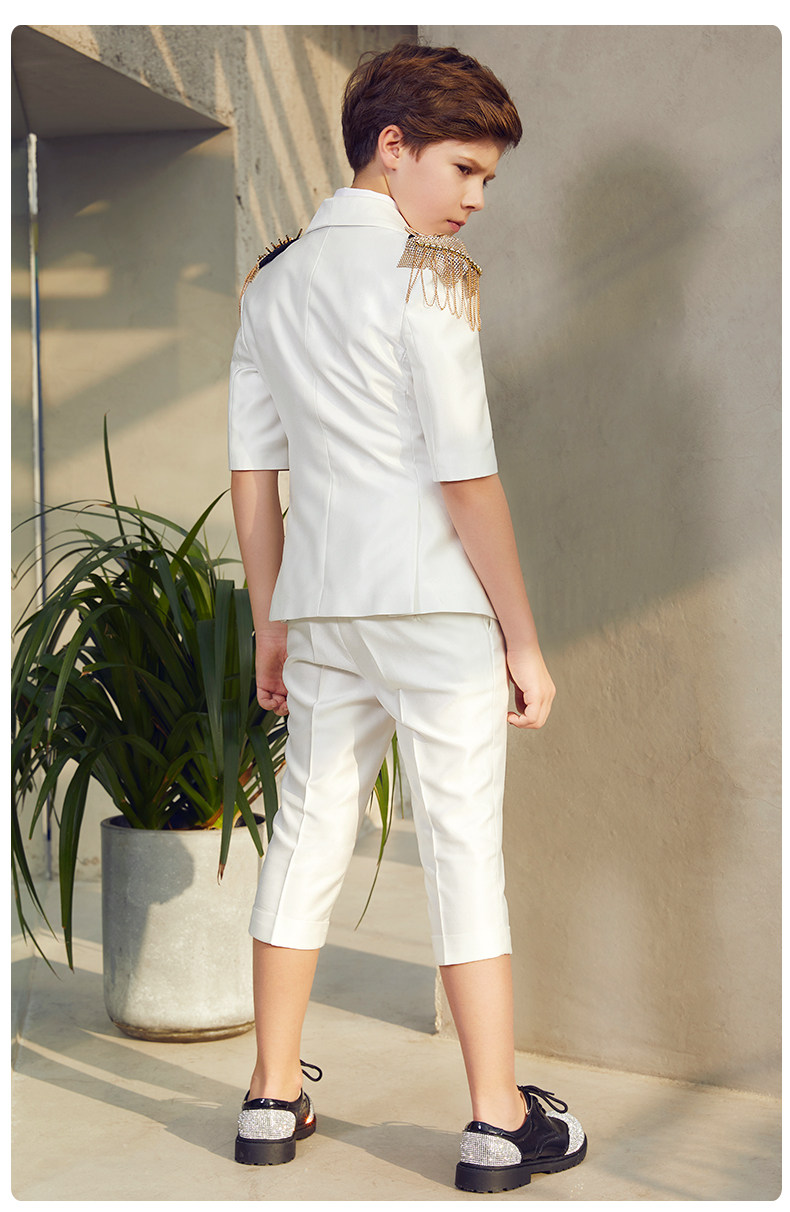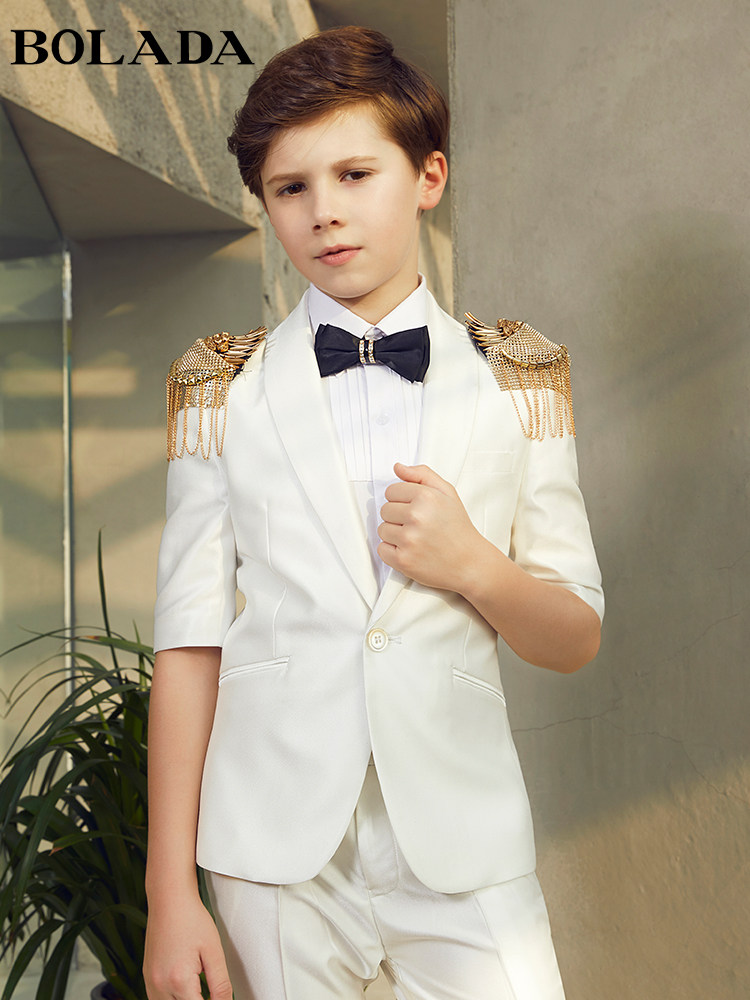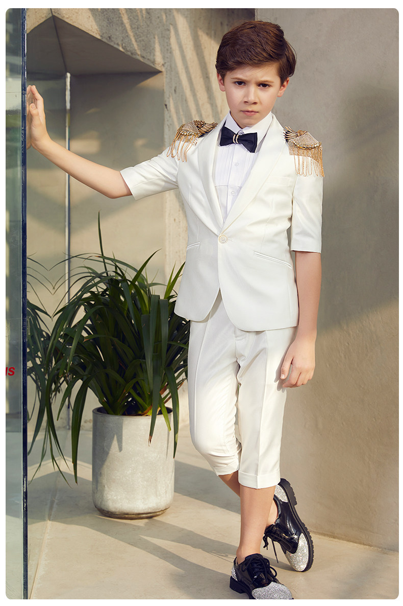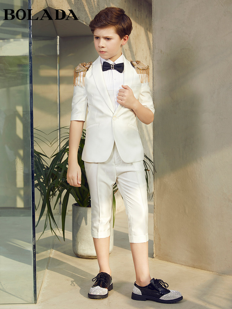 Костюм мальчика цветочника, летнее белое платье, шорты для мальчиков, наряд для музыкальных выступлений, короткий рукав