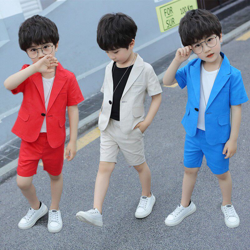 Костюм, детское платье, летний комплект для мальчиков для отдыха, из хлопка и льна, 2022, в корейском стиле, короткий рукав, 3 предмета
