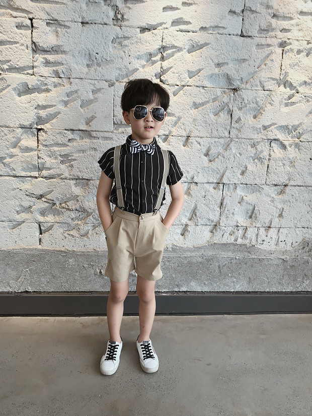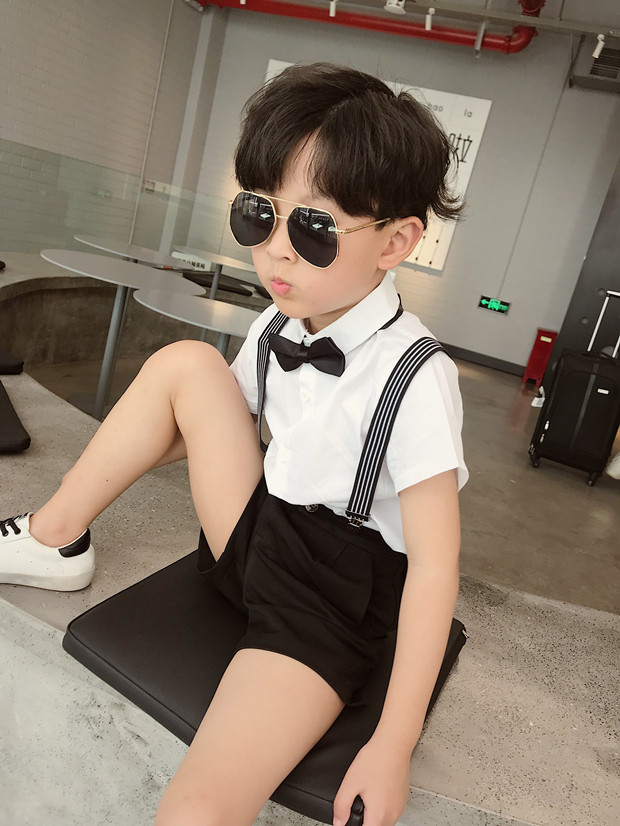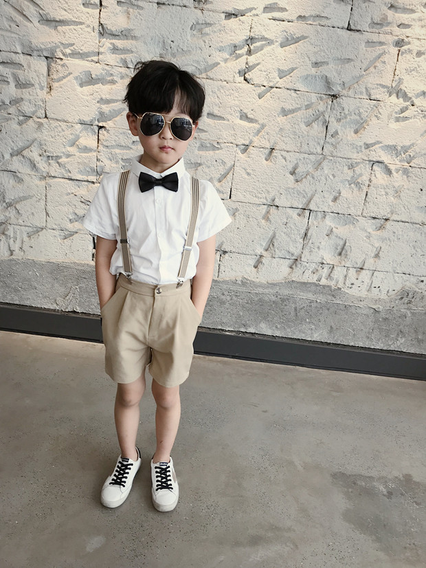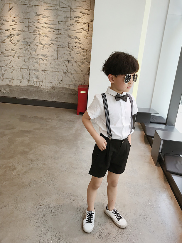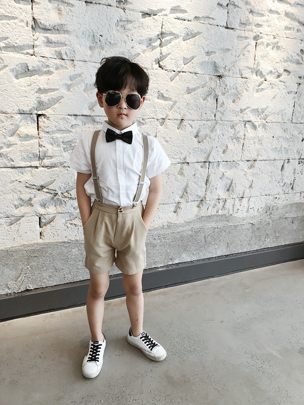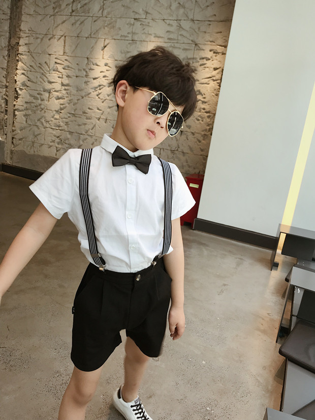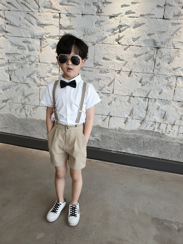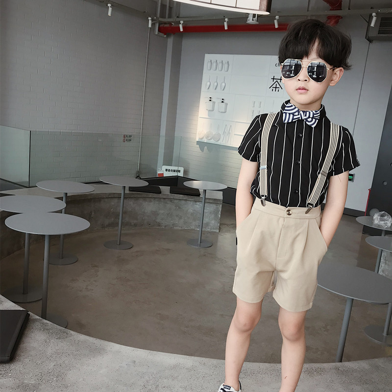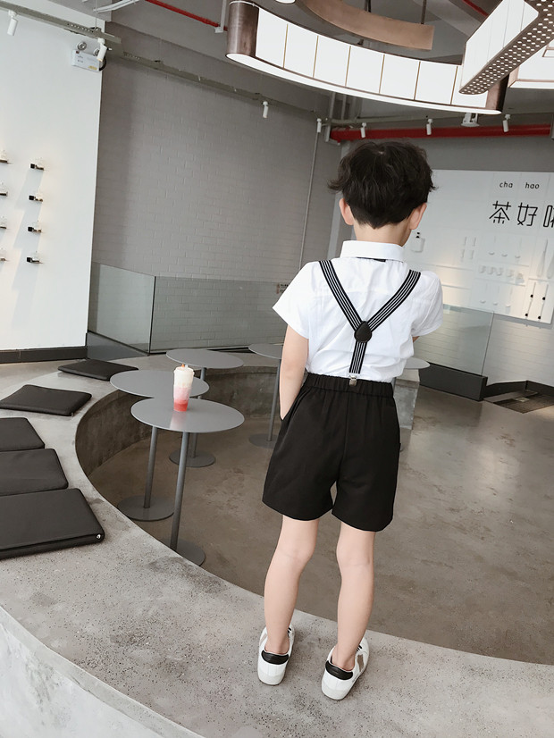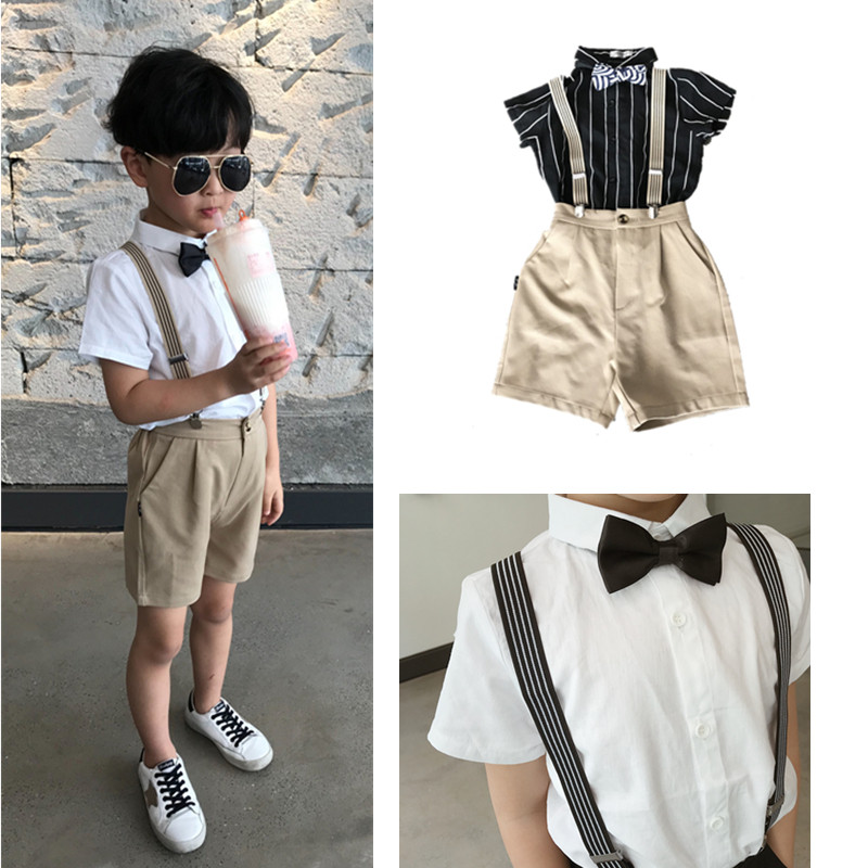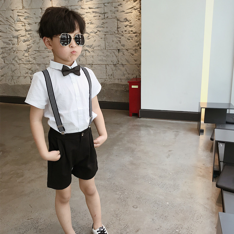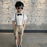 Детский костюм для мальчиков, шорты, подтяжки, комплект, платье, короткий рукав, подарок на день рождения