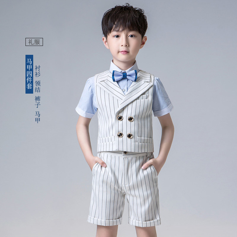 Платье для мальчиков, комплект, детский пиджак классического кроя, костюм, в корейском стиле, в британском стиле, 3 предмета
