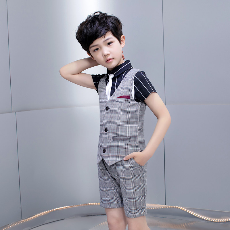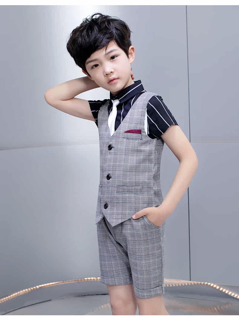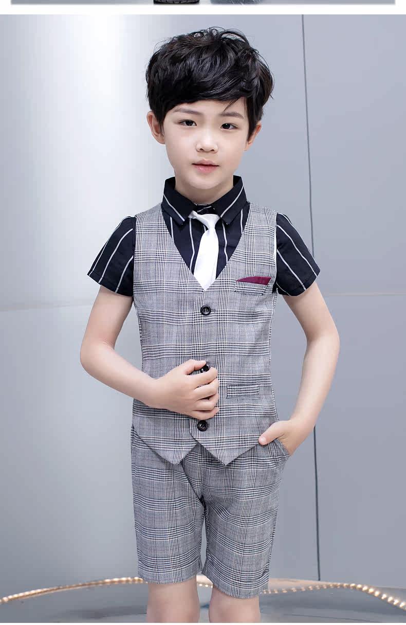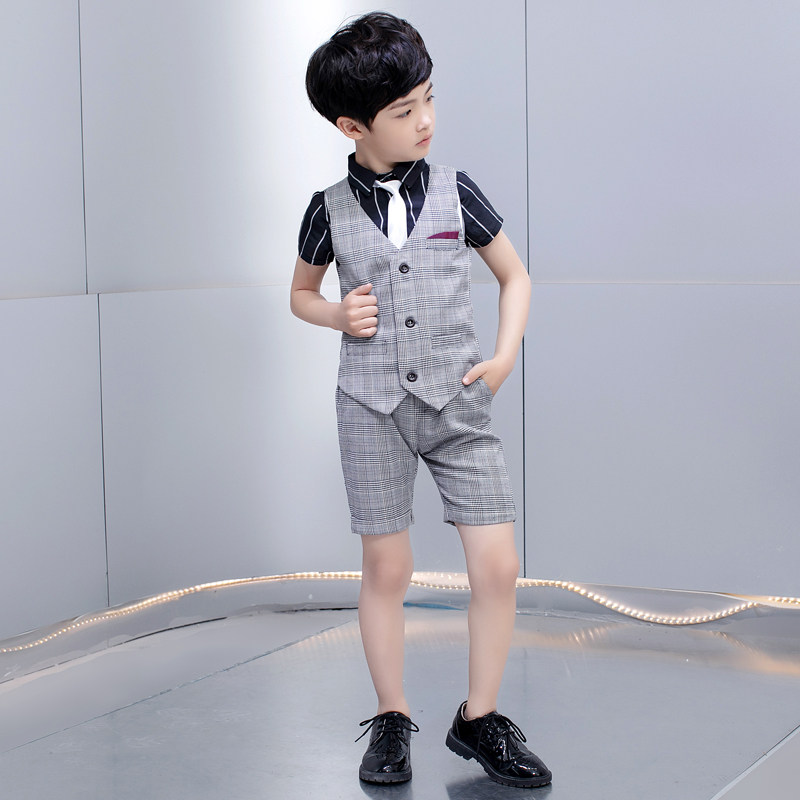 Детский костюм мальчика цветочника, пиджак классического кроя, жилет, черный комплект, рубашка, платье, пианино, 3 предмета