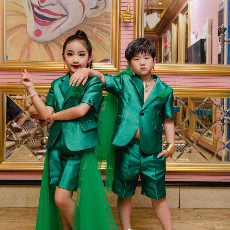 Дизайнерский летний короткий зеленый костюм, платье, манекен головы, шорты, для подиума