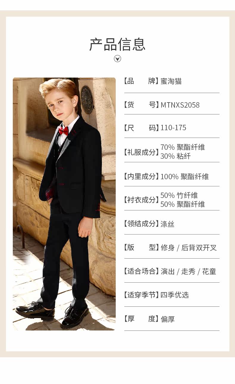 蜜淘猫 Костюм мальчика цветочника, комплект для мальчиков, детское пианино, в британском стиле, подходит для подростков
