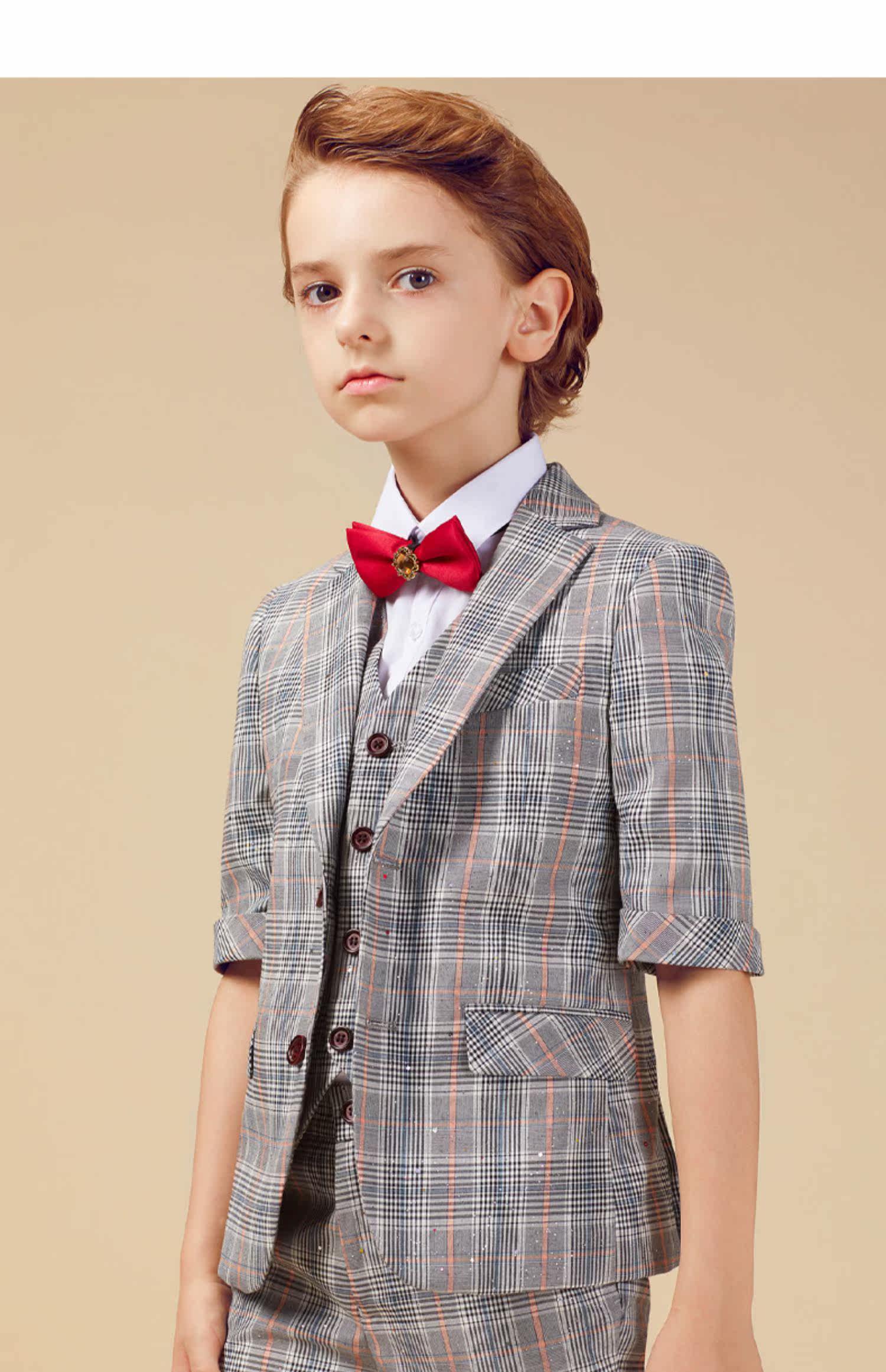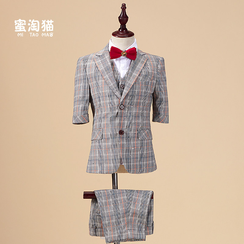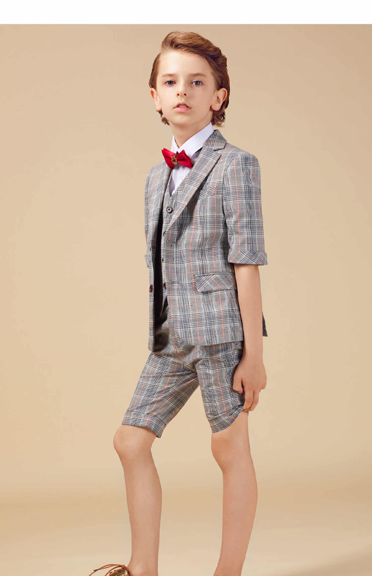 Летний костюм мальчика цветочника, детское пианино, наряд для музыкальных выступлений, пиджак классического кроя, короткий рукав, для подиума