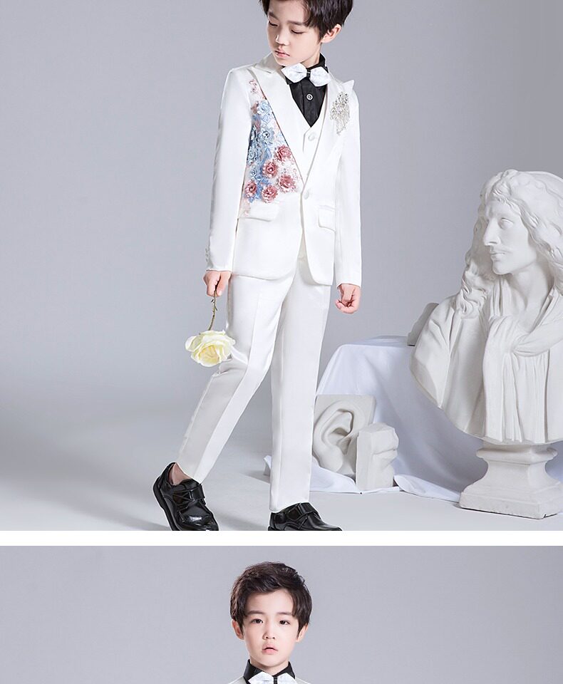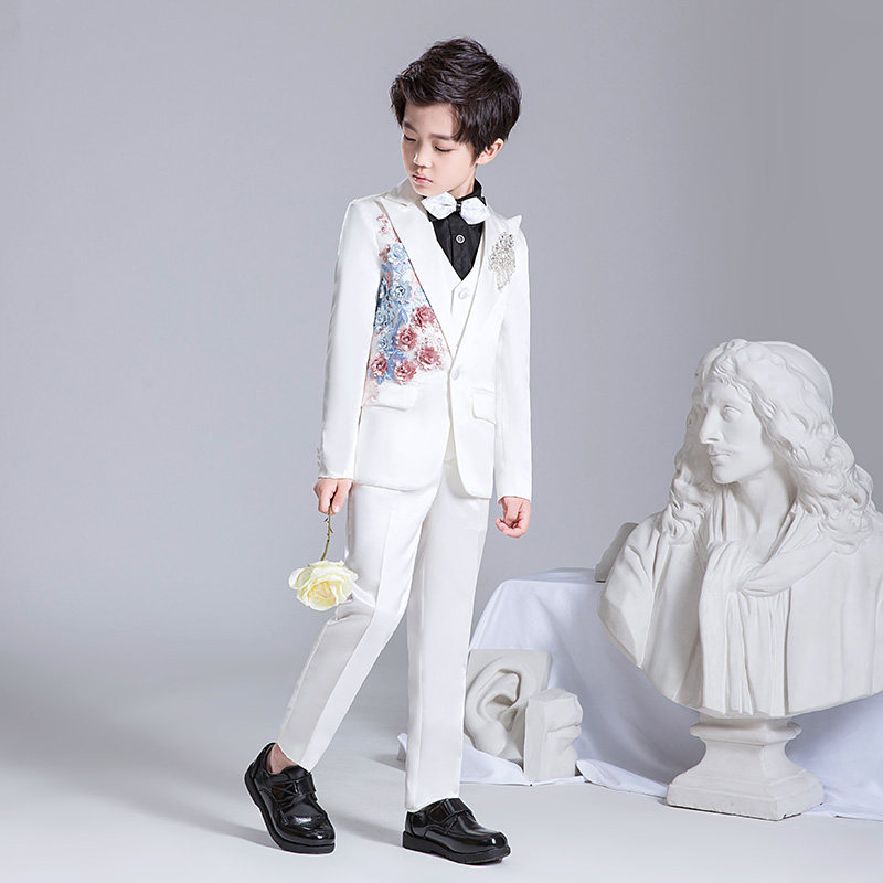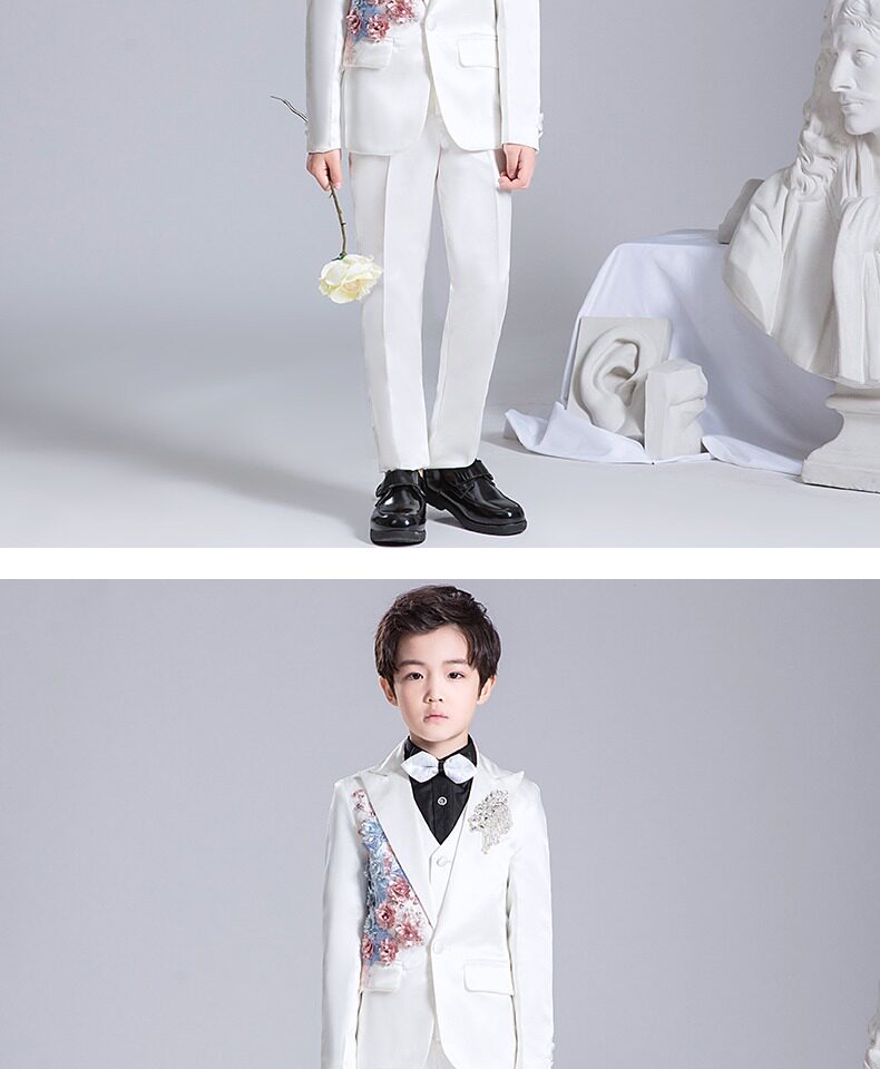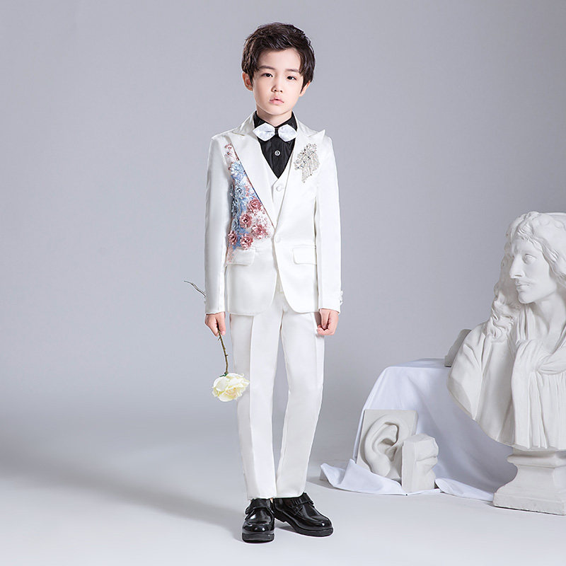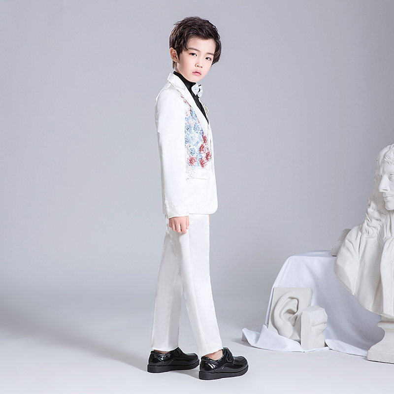 Костюм мальчика цветочника, детский белый цветной классический костюм, платье для мальчиков, пианино, наряд для музыкальных выступлений, белая одежда, подходит для подростков