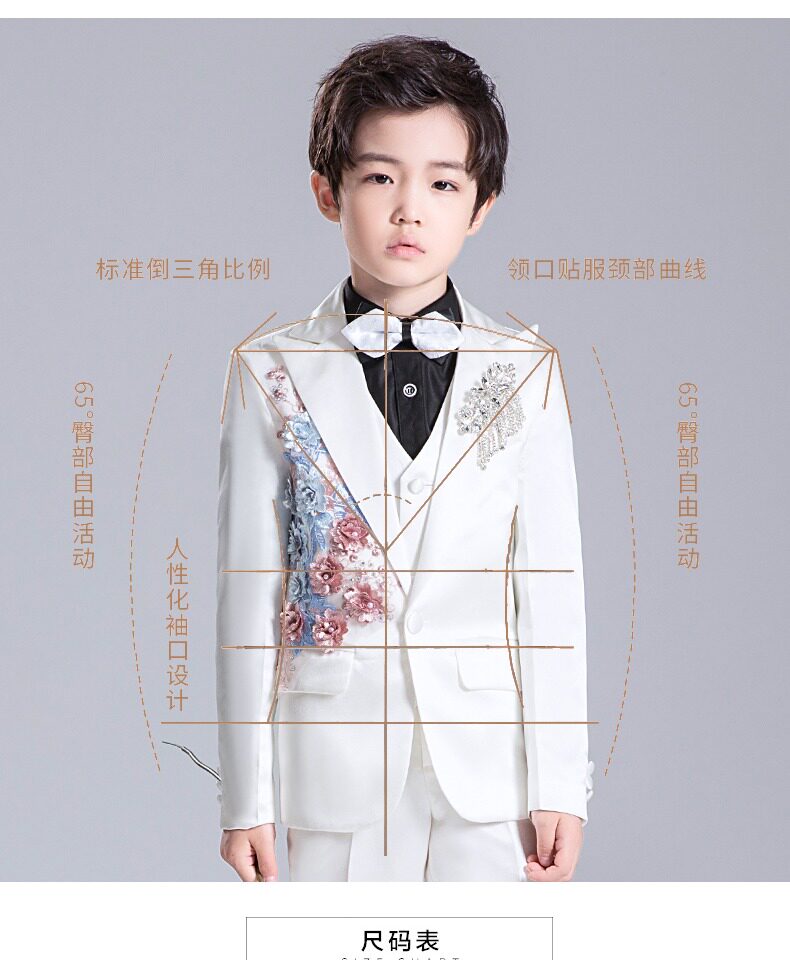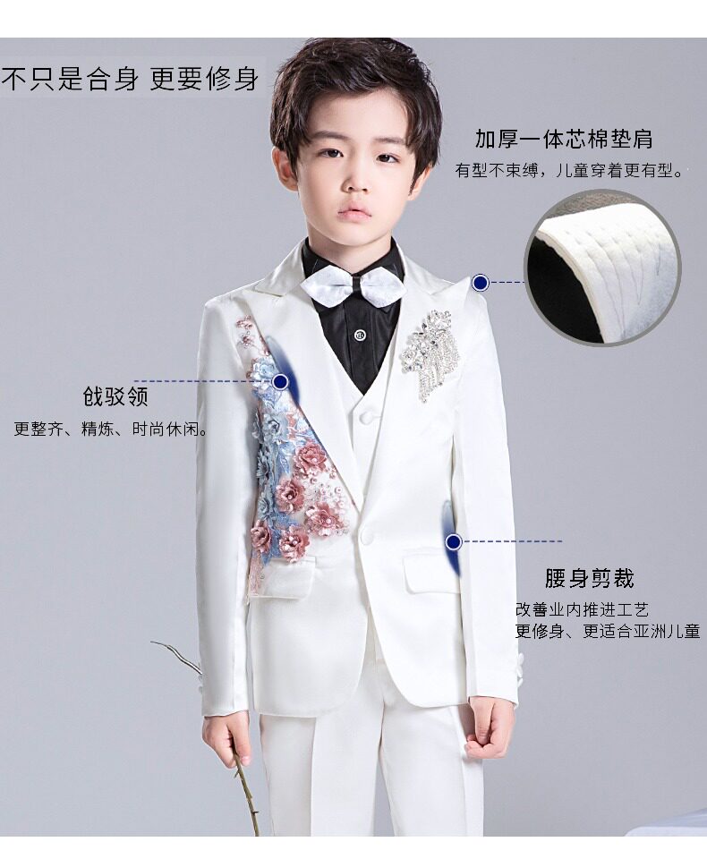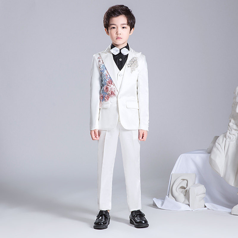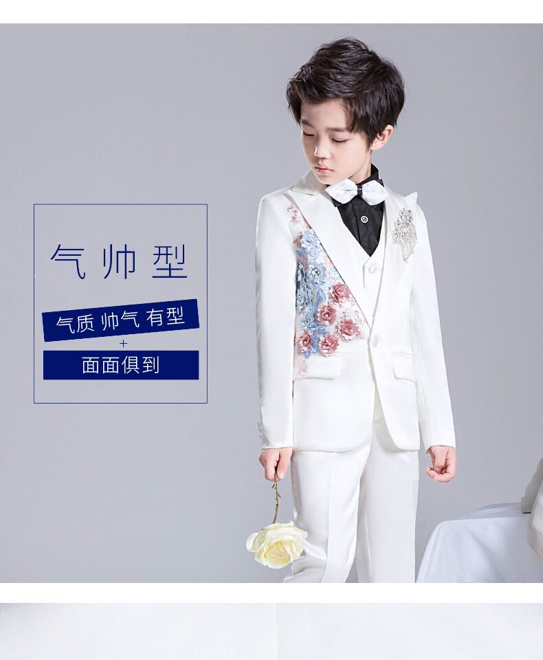 Костюм мальчика цветочника, детский белый цветной классический костюм, платье для мальчиков, пианино, наряд для музыкальных выступлений, белая одежда, подходит для подростков
