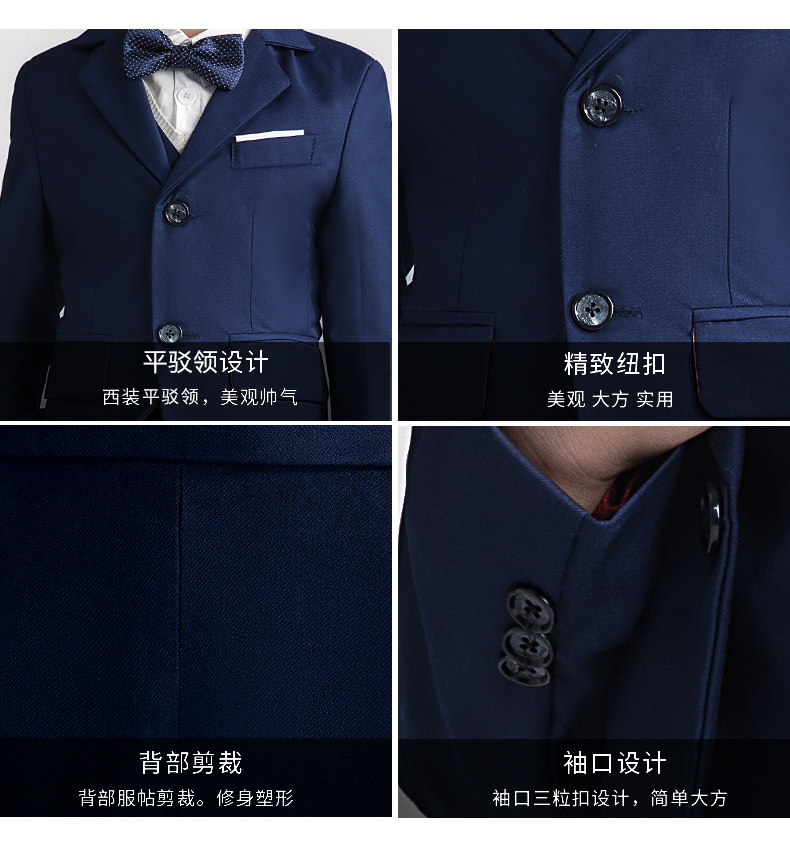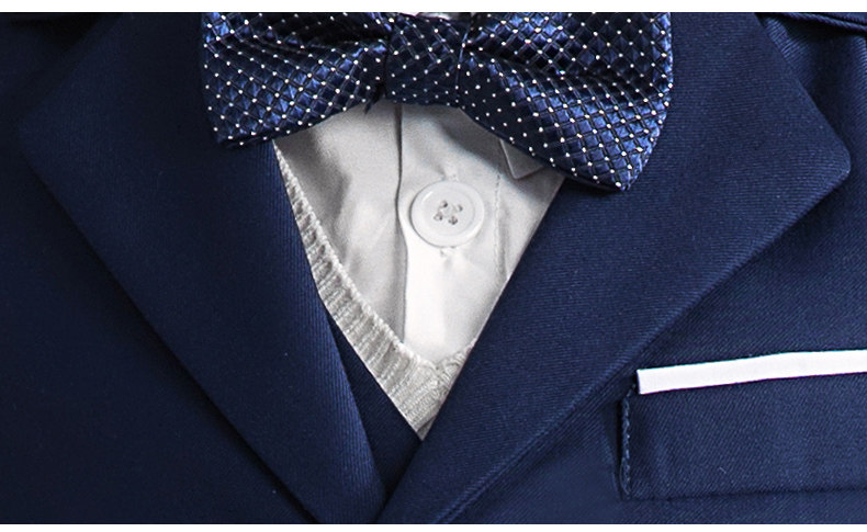 - Темно-синий комплект, куртка, рубашка, галстук-бабочка, штаны, 4 предмета