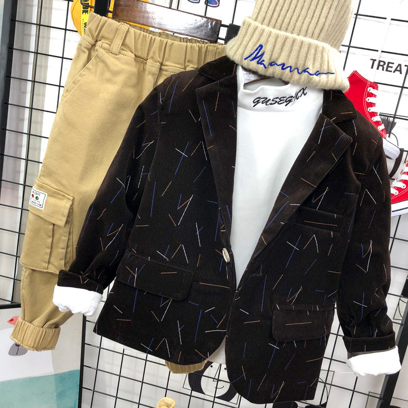 Осенний демисезонный детский вельветовый классический костюм для мальчиков, платье, детская одежда