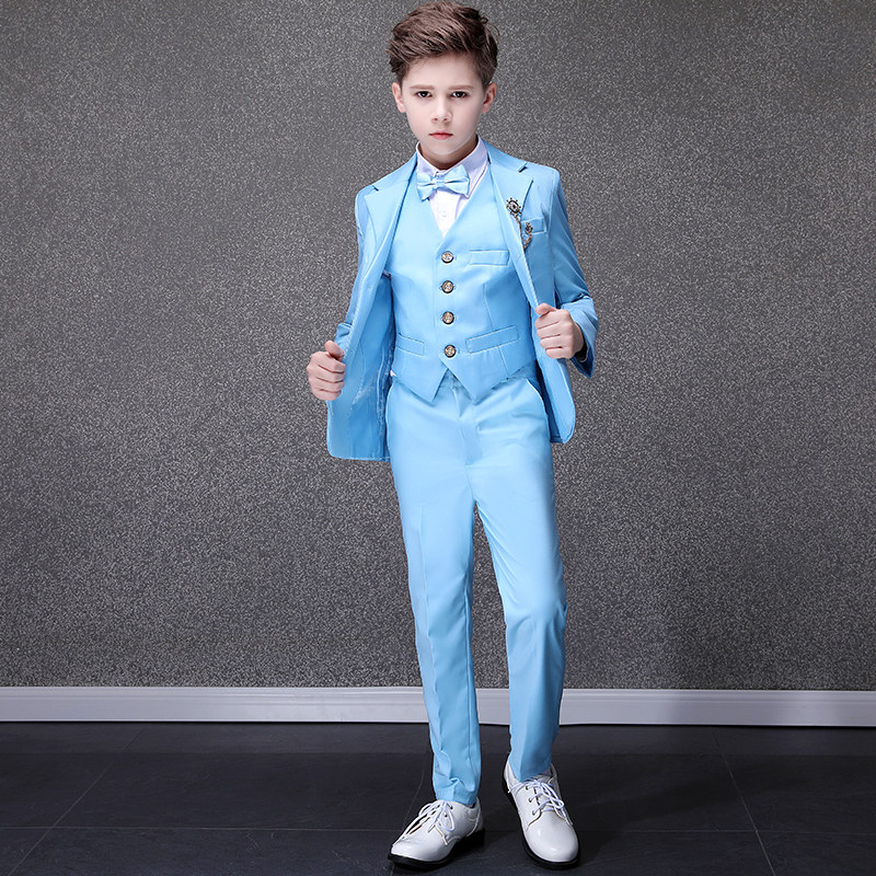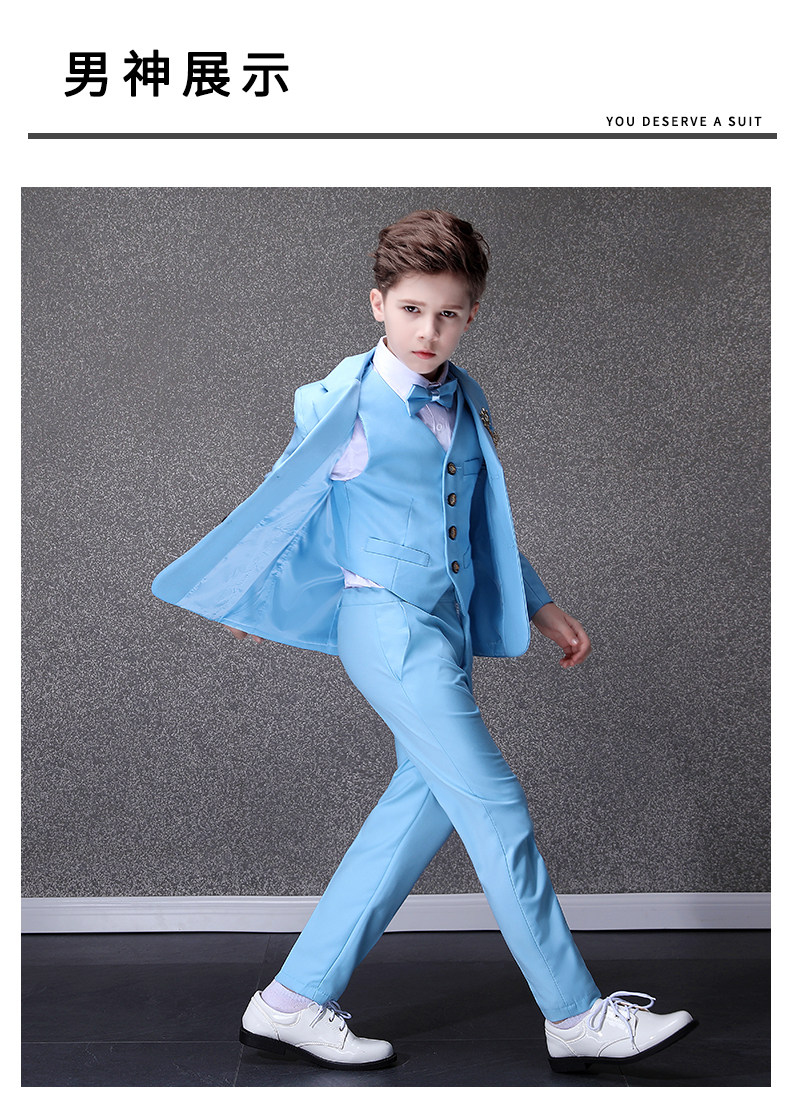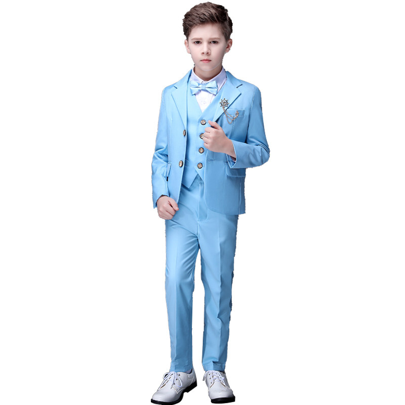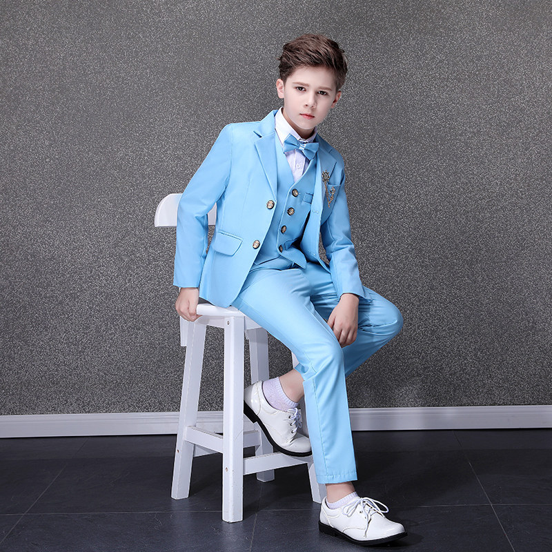Синий детский классический костюм, костюм мальчика цветочника, наряд для музыкальных выступлений, платье, в британском стиле, благородный крой, для подиума, белая одежда