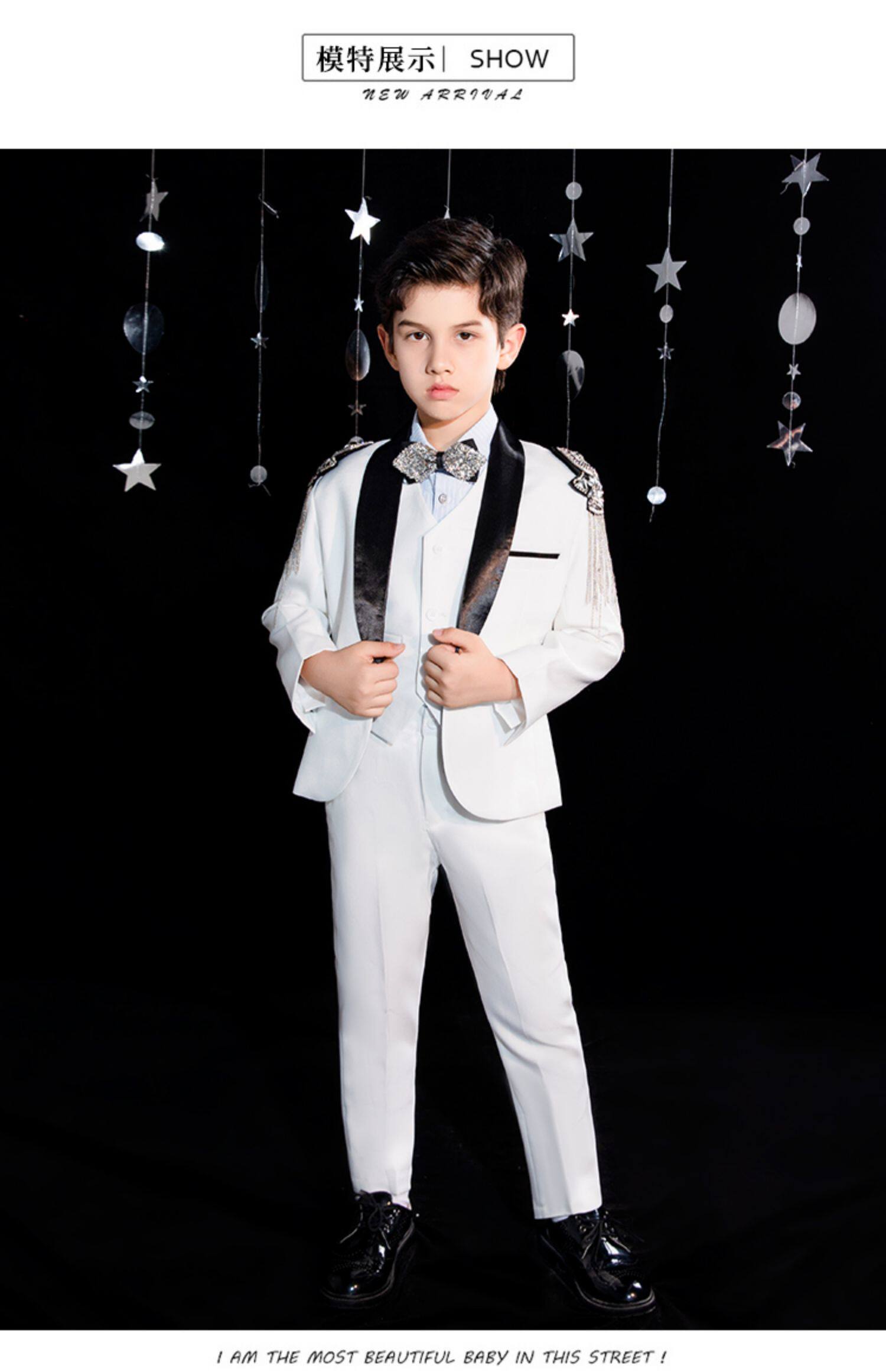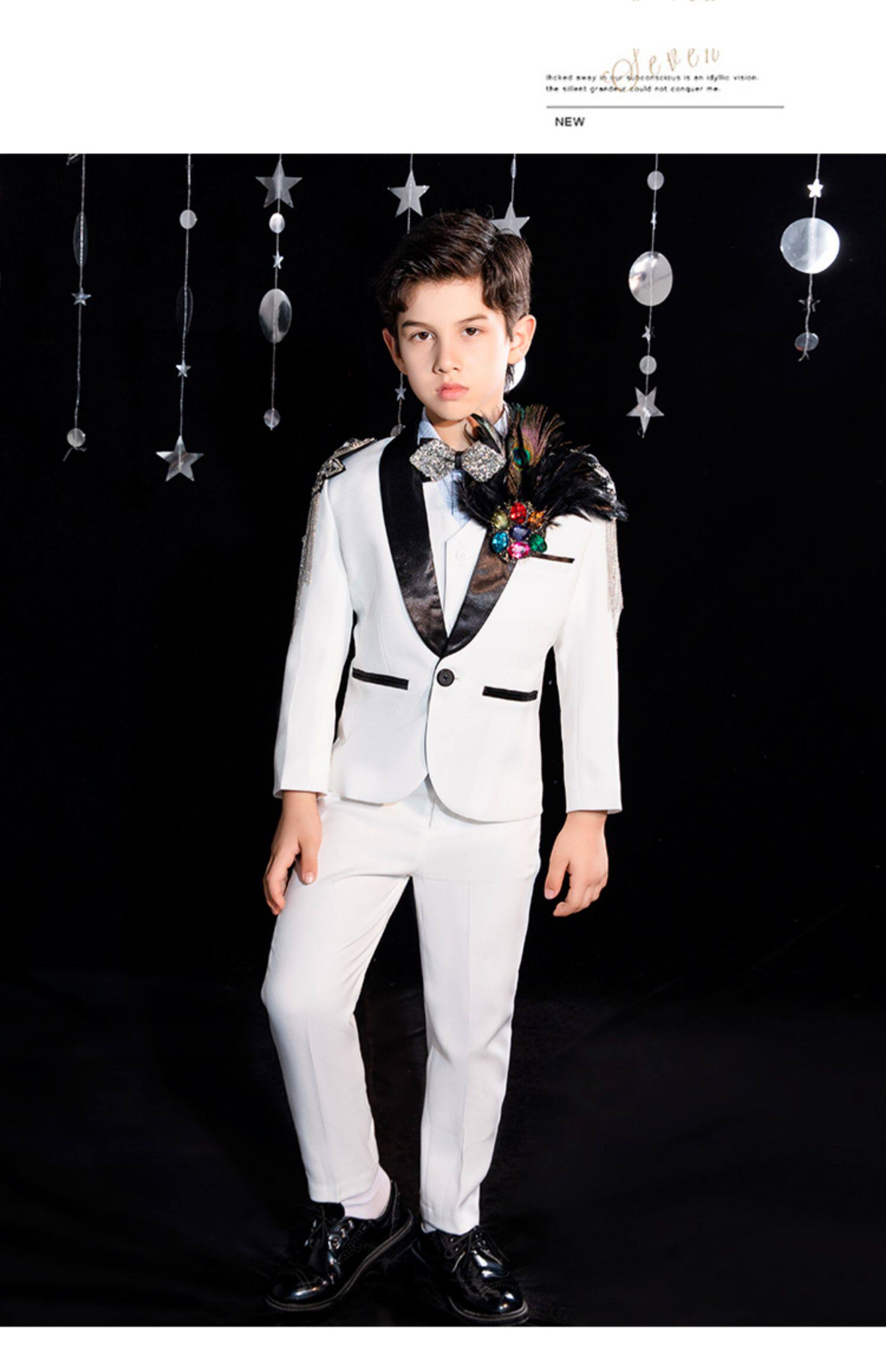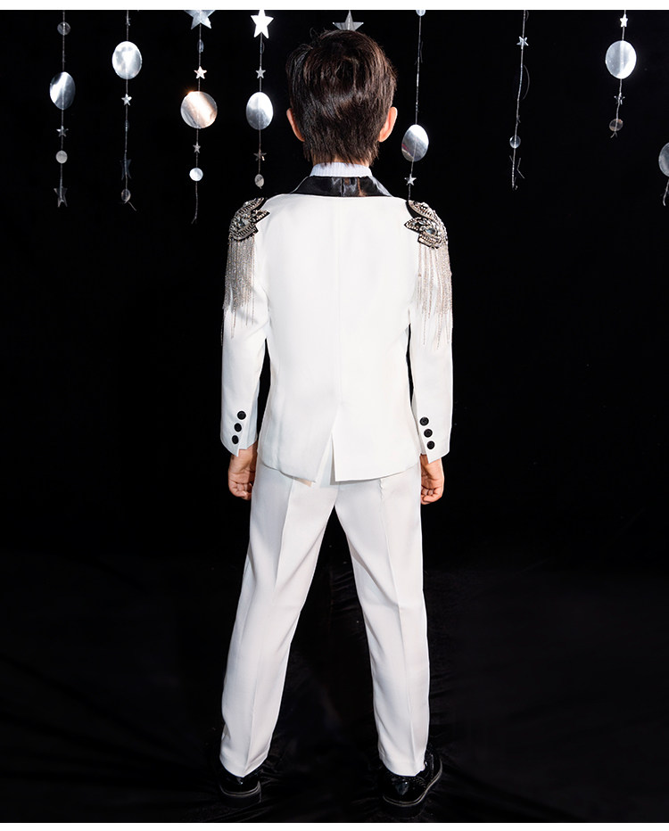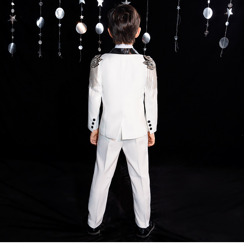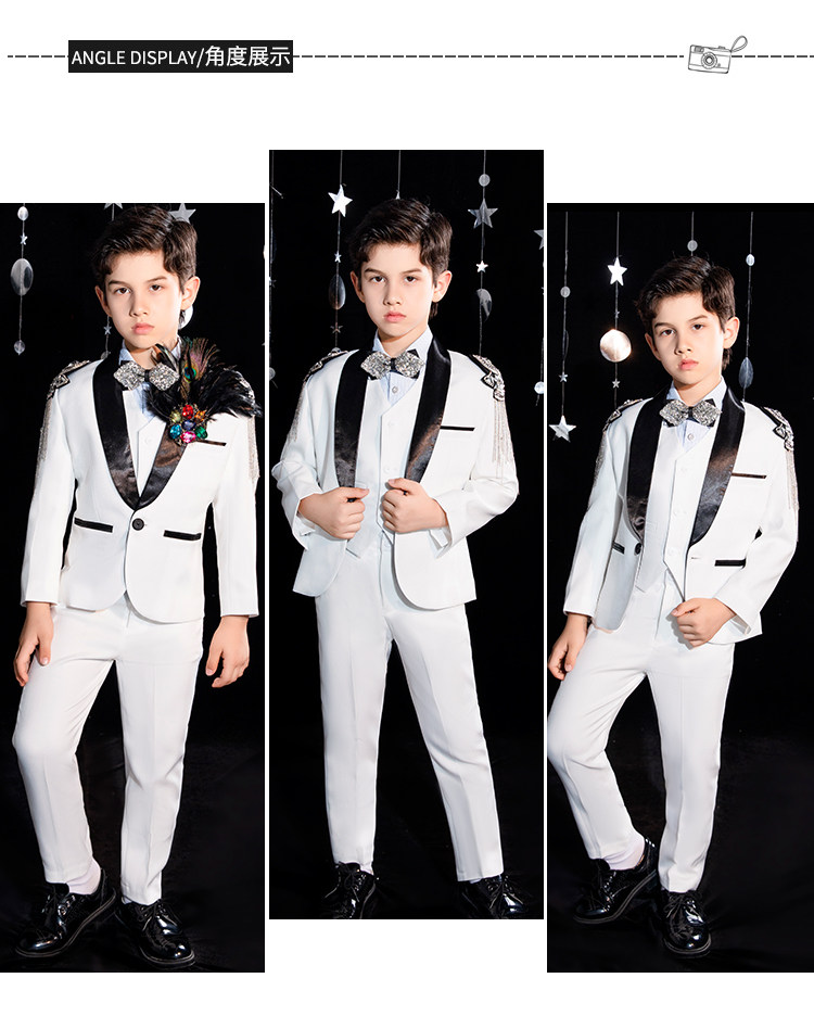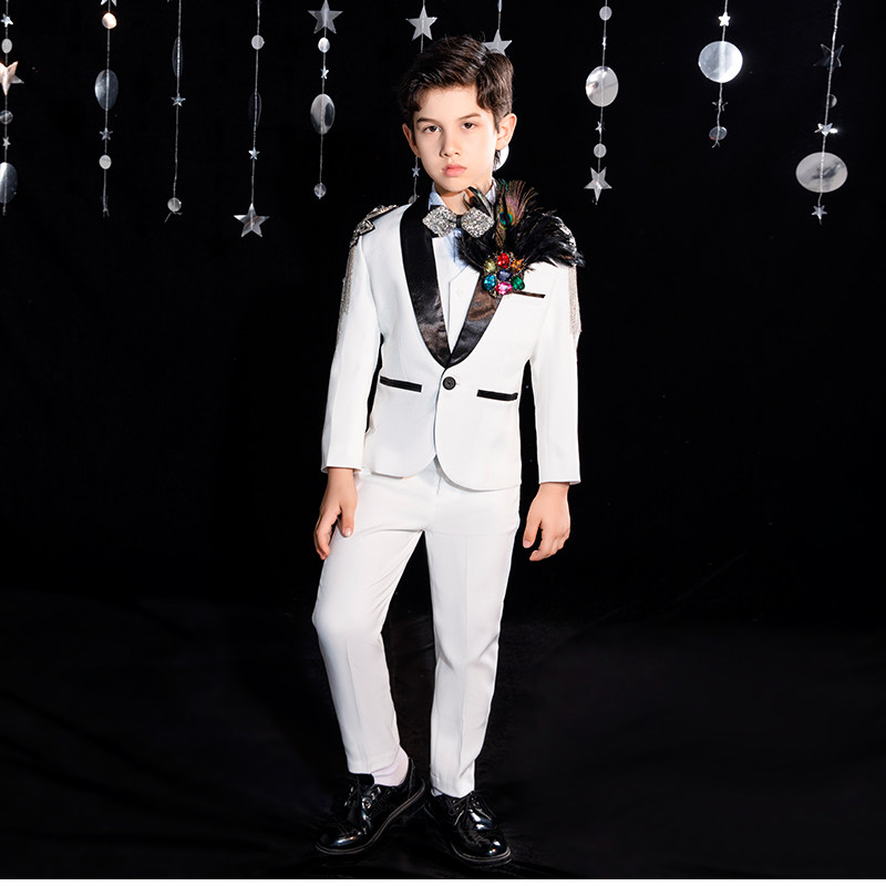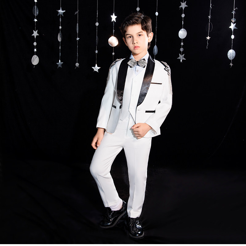 Детский классический костюм для мальчиков, платье, белый наряд для музыкальных выступлений, подарок на день рождения