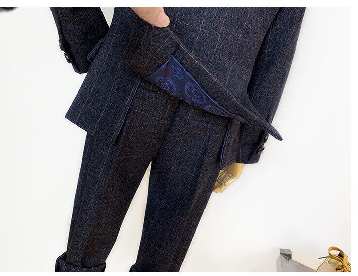 - Темно-синяя куртка, штаны, жилет, рубашка