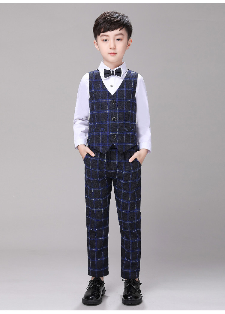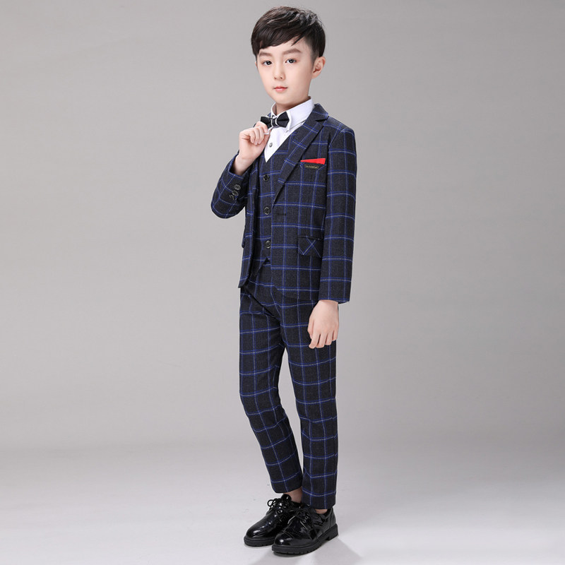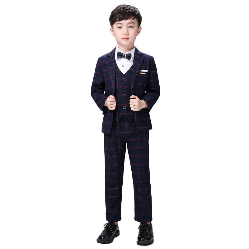 Детский классический костюм для мальчиков, платье, осенний комплект, в британском стиле, 4 предмета