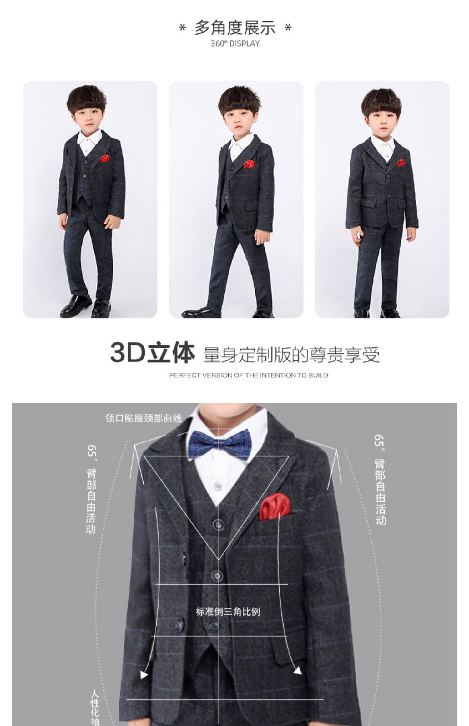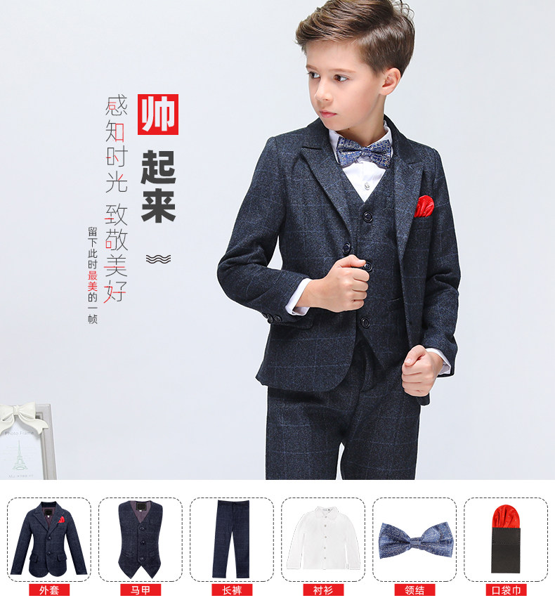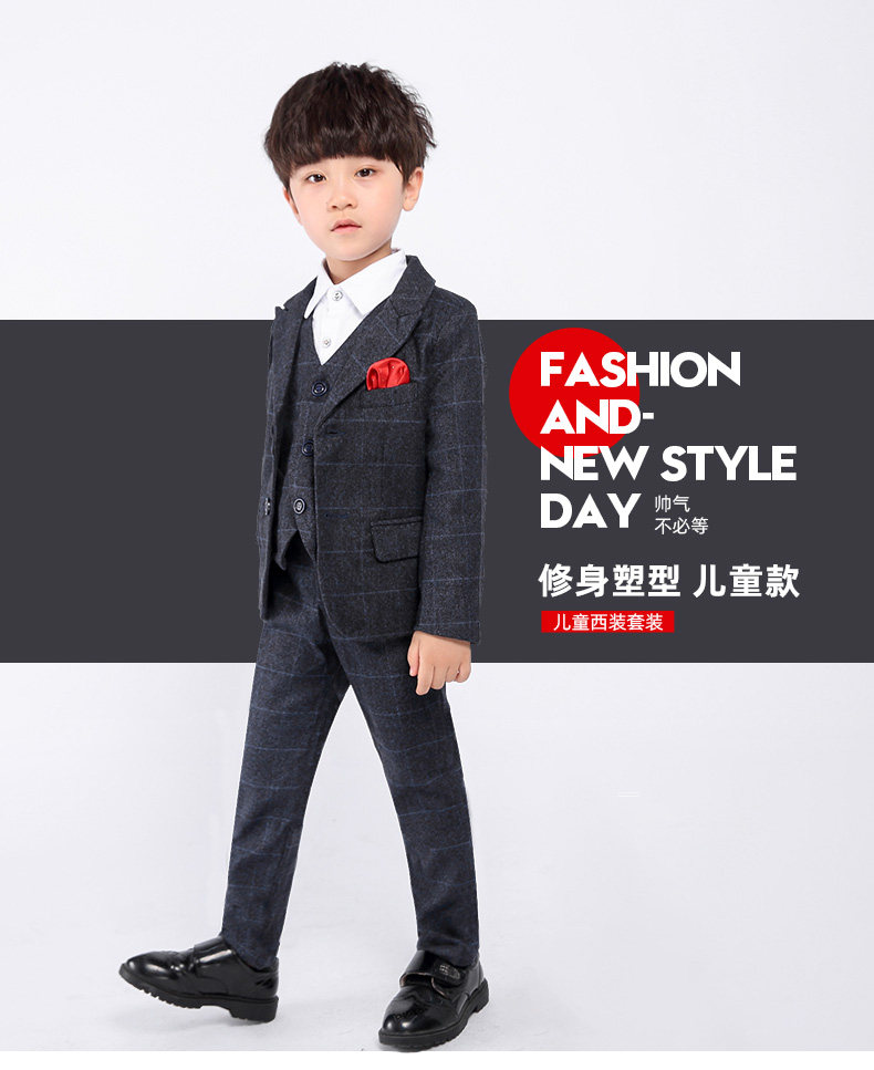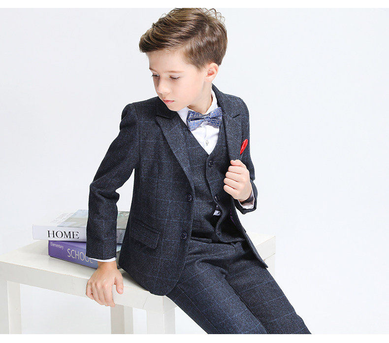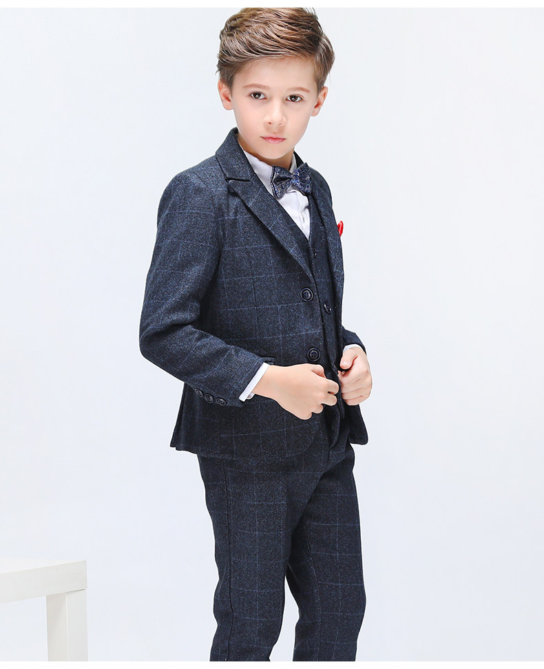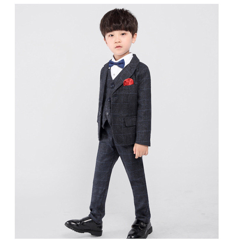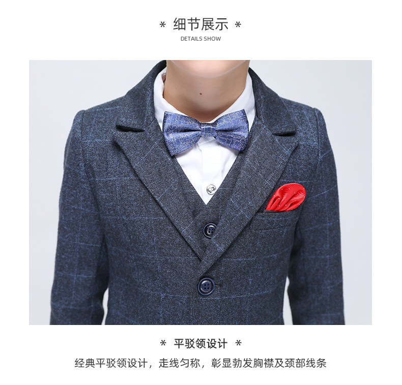 Детский классический костюм, шерстяной демисезонный комплект для мальчиков, платье, 3 предмета, увеличенная толщина