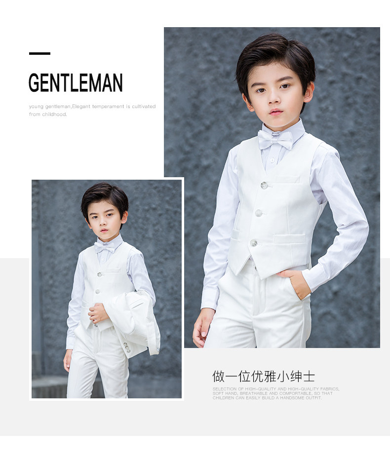 Детский классический костюм для мальчиков, белый комплект, платье девочки цветочницы, осеннее пианино, 3 предмета