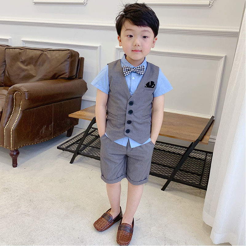 Летний костюм для мальчиков, платье, детский комплект, в корейском стиле