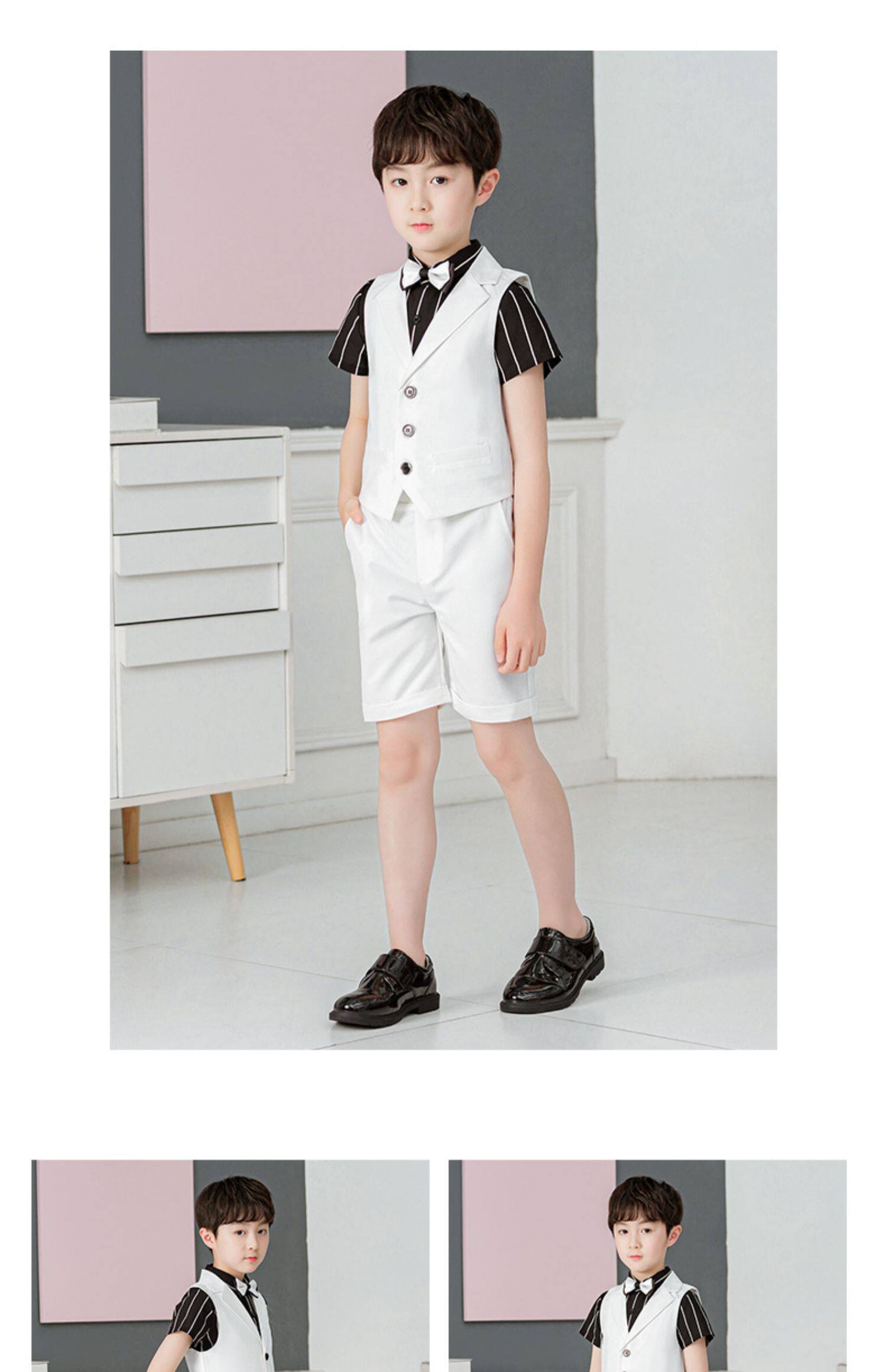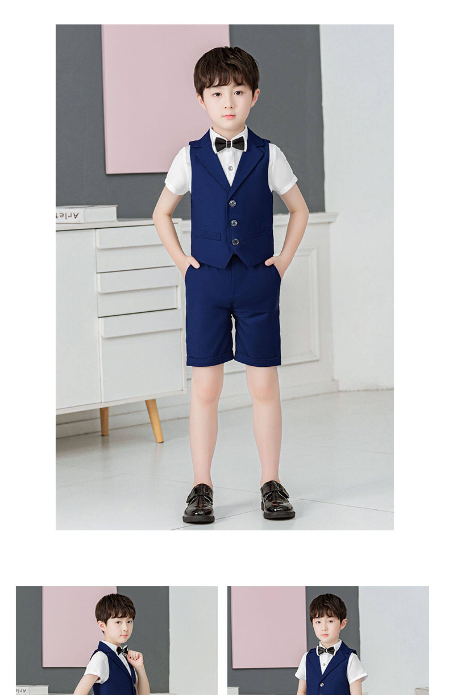 Костюм мальчика цветочника, летний классический костюм, детский жилет, белое платье девочки цветочницы