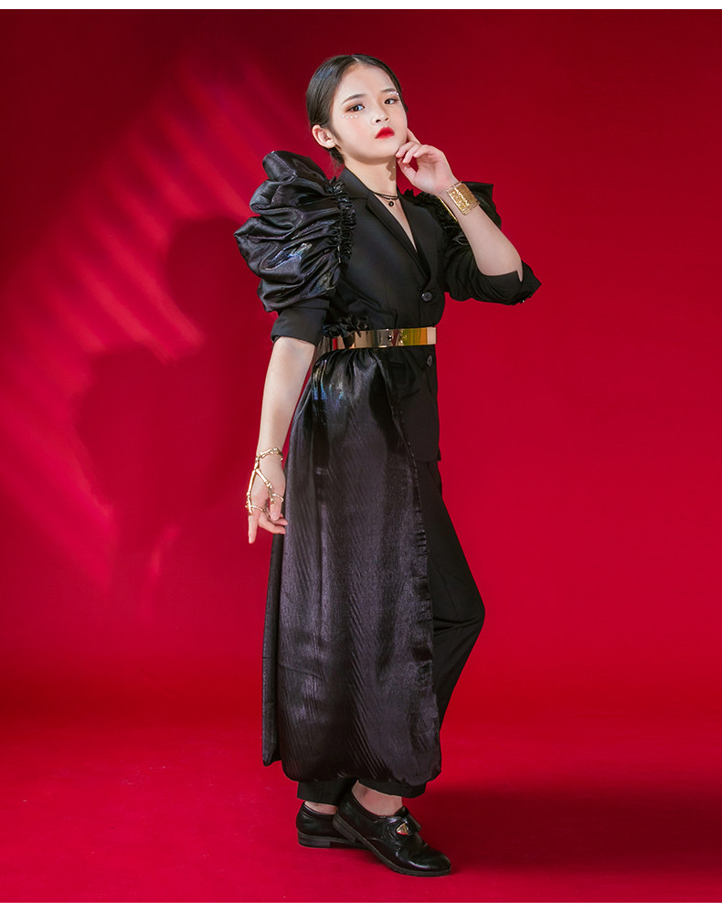 Черный детский костюм, оригинальный дизайнерский манекен головы, рукава фонарики, 2022