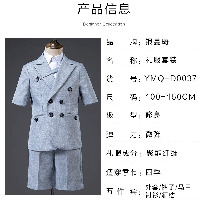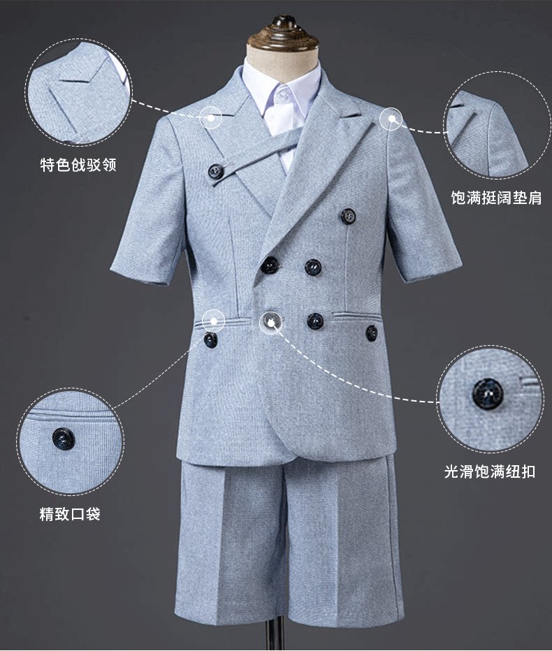 Детский летний классический костюм для мальчиков, платье, пианино, наряд для музыкальных выступлений, короткий рукав