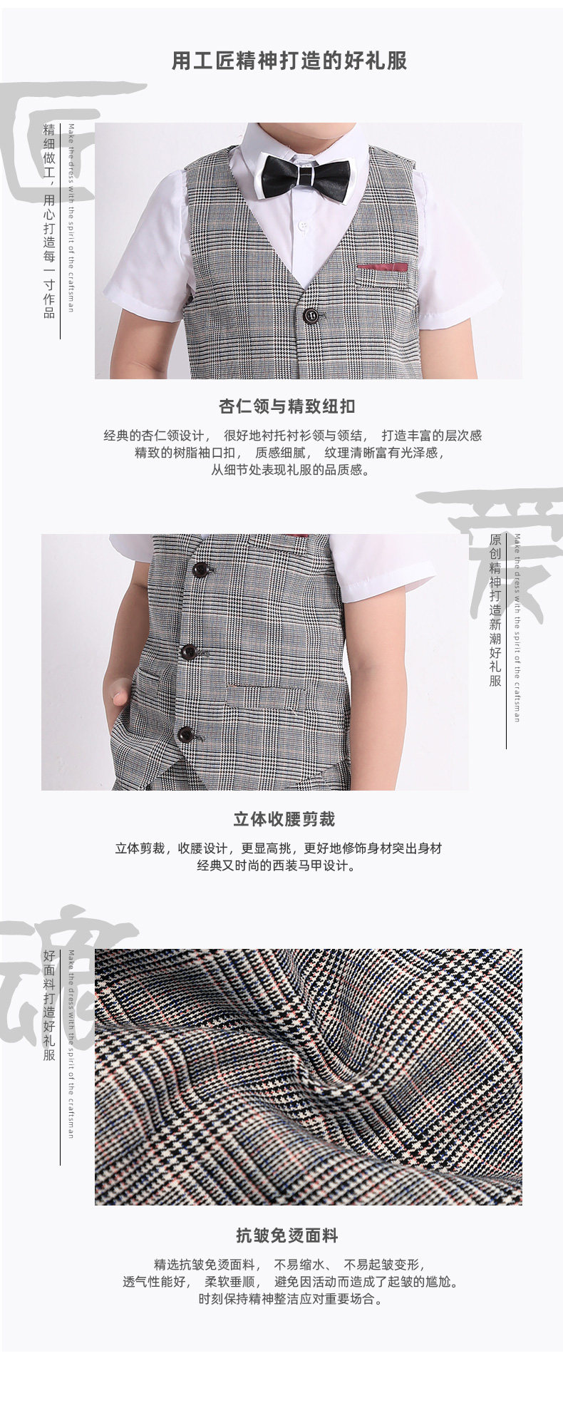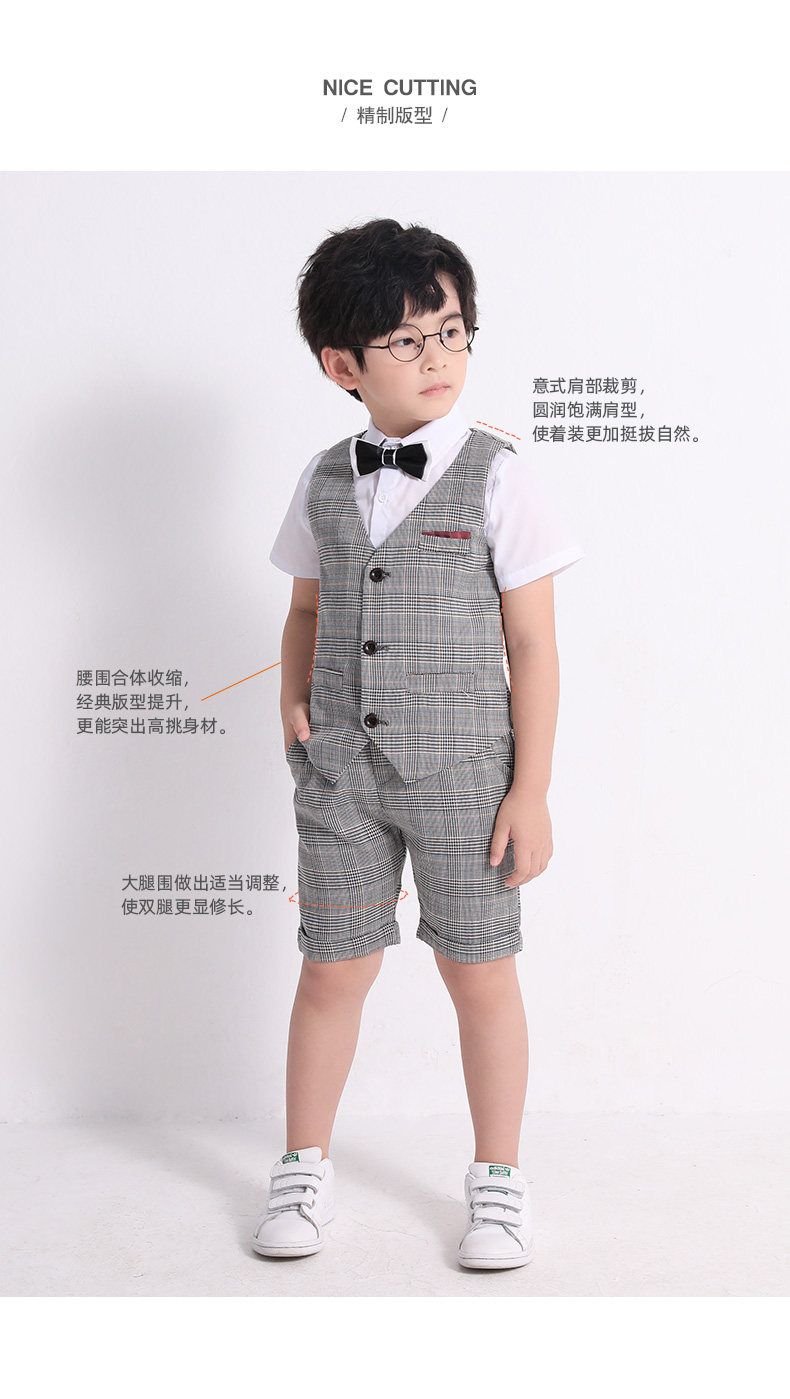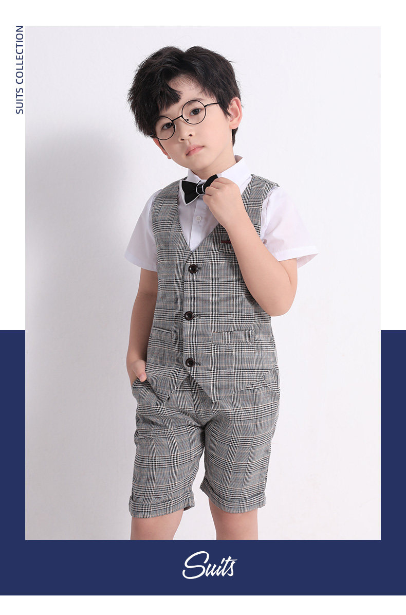 Летний детский костюм для мальчиков, жилет, комплект, платье, наряд для музыкальных выступлений, в британском стиле