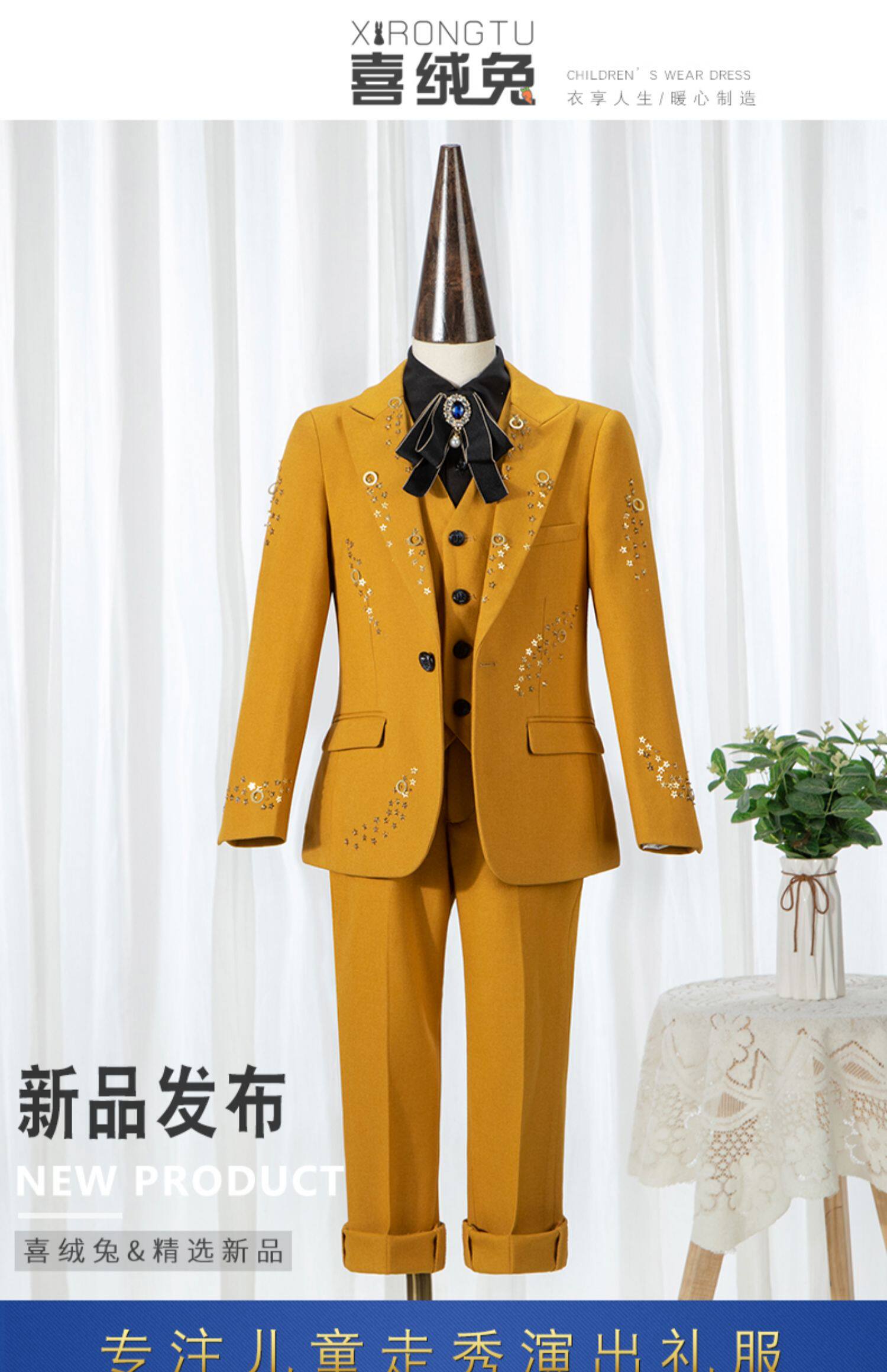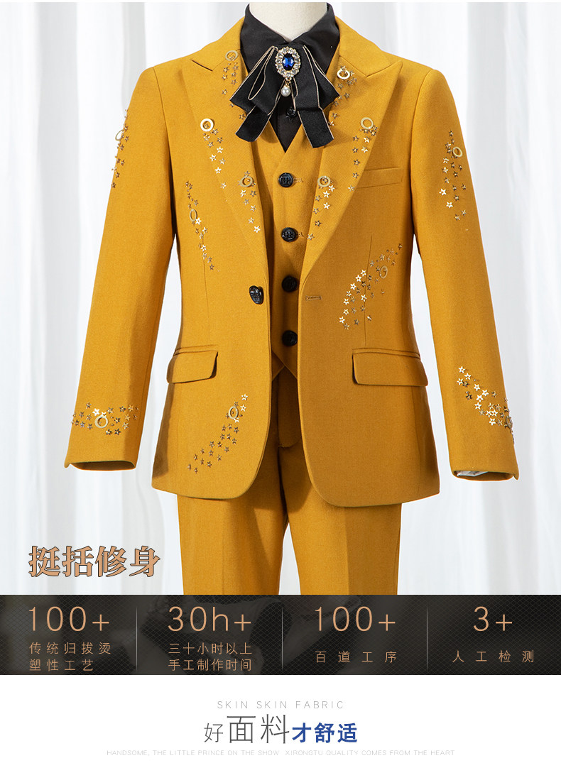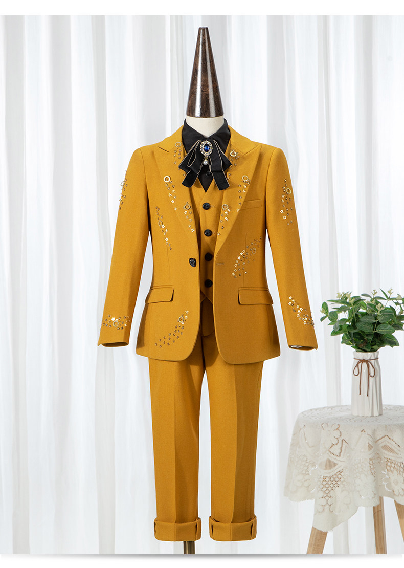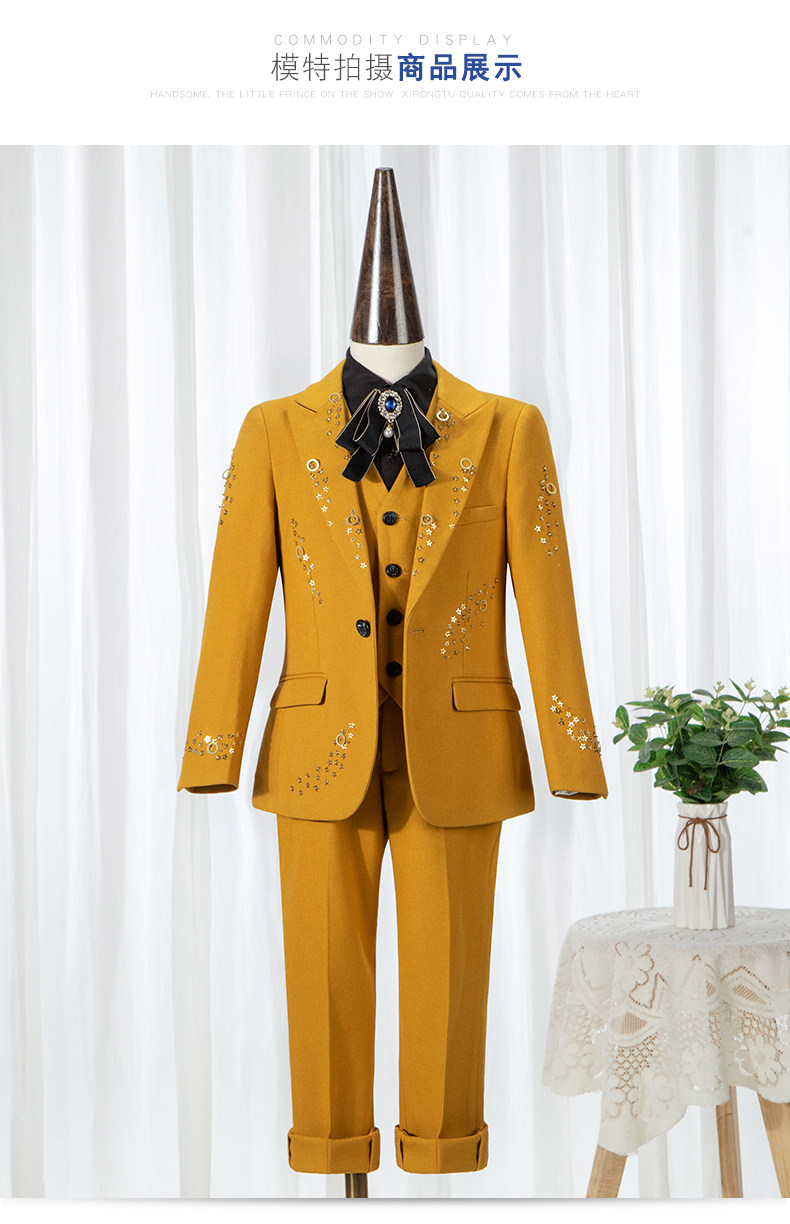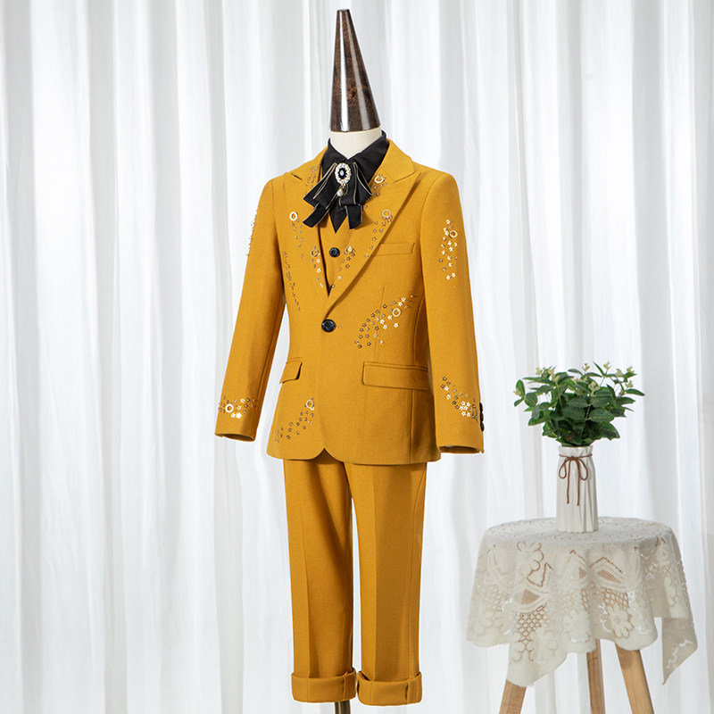 Детский классический костюм, костюм мальчика цветочника, желтый манекен головы, пианино, коллекция 2022
