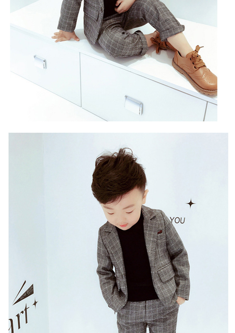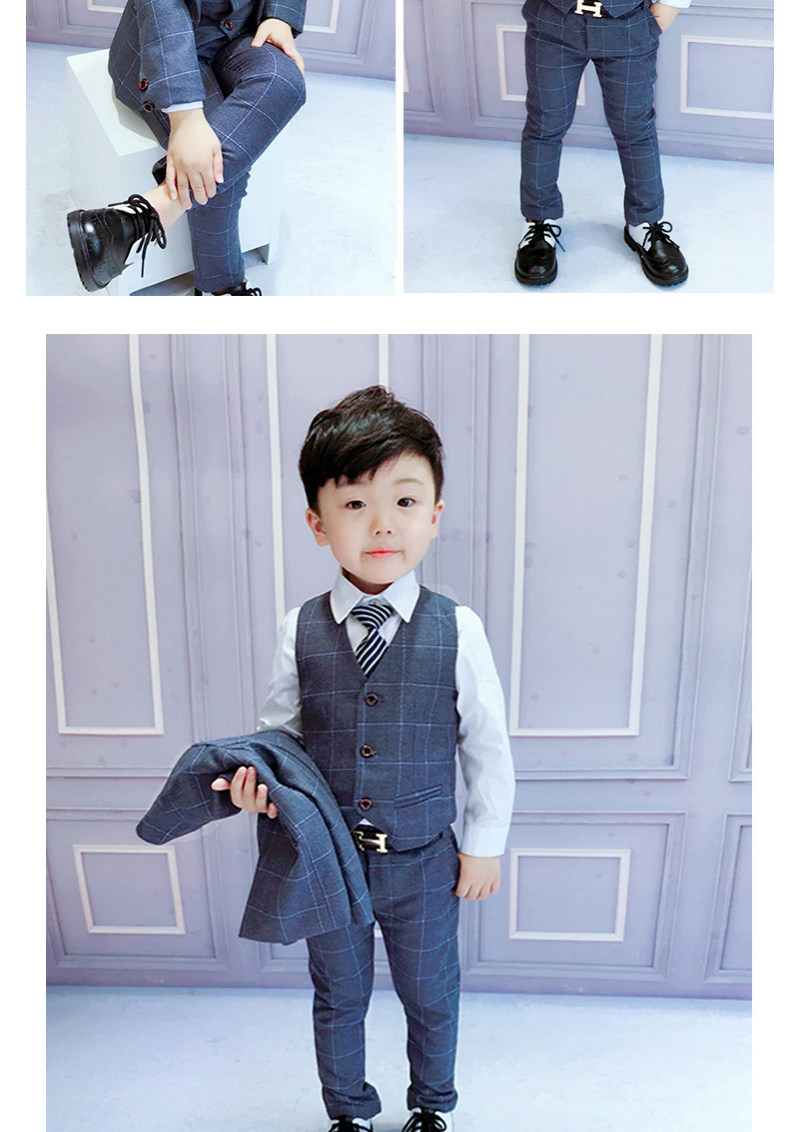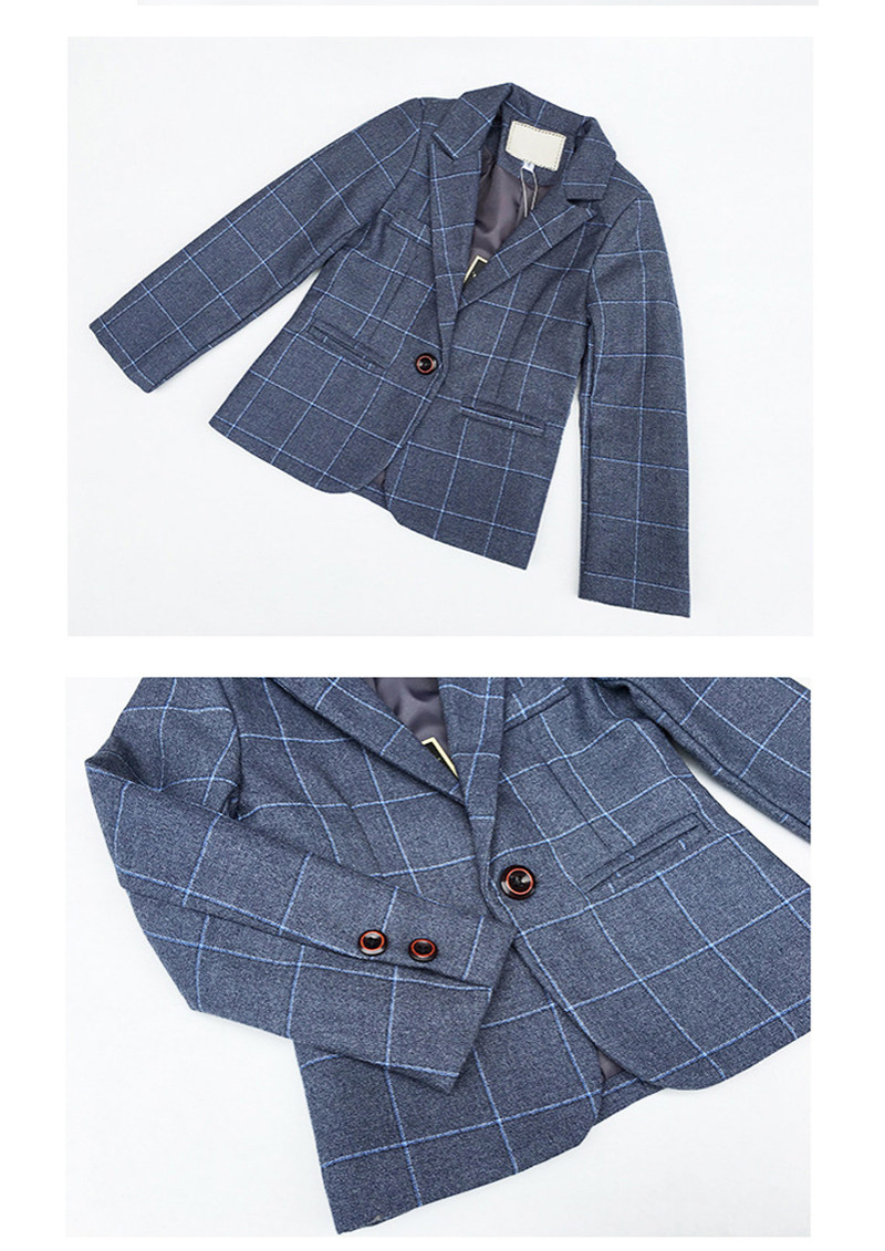 - Весенне-осенний темно-серый клетчатый комплект из четырех предметов (включая рубашку)