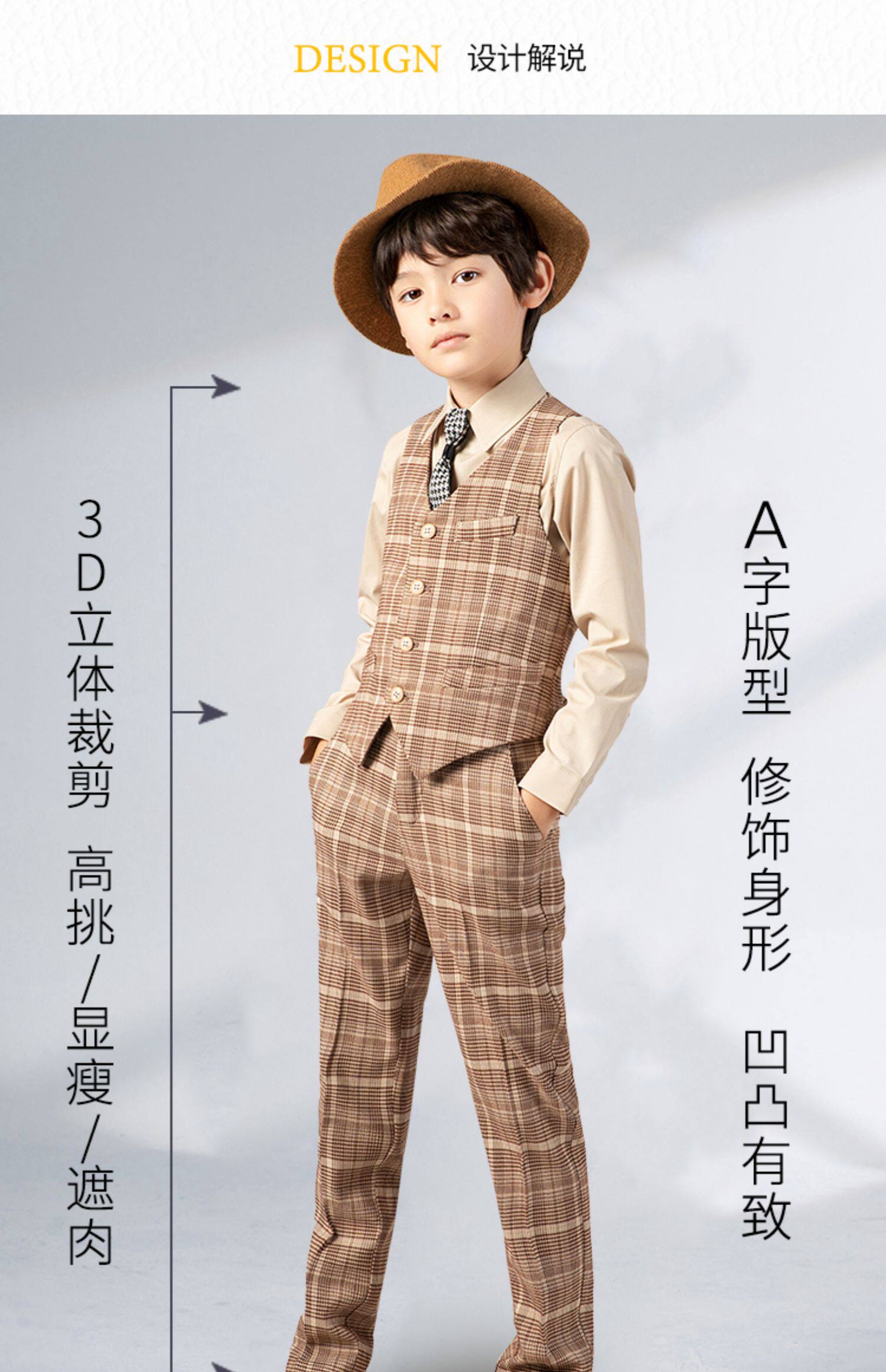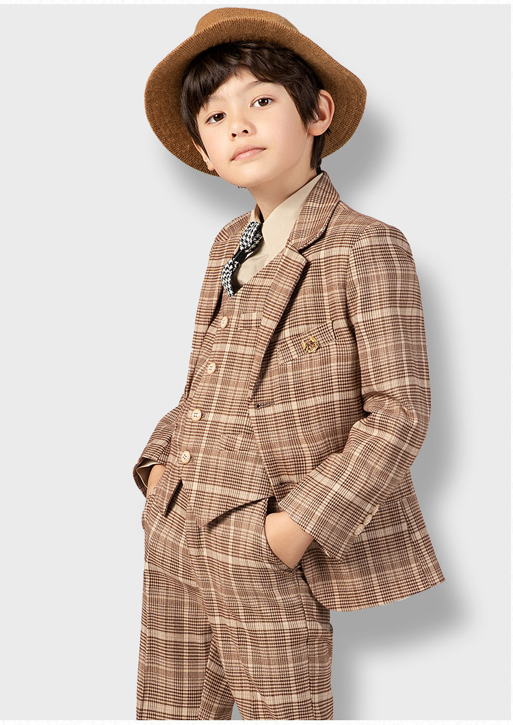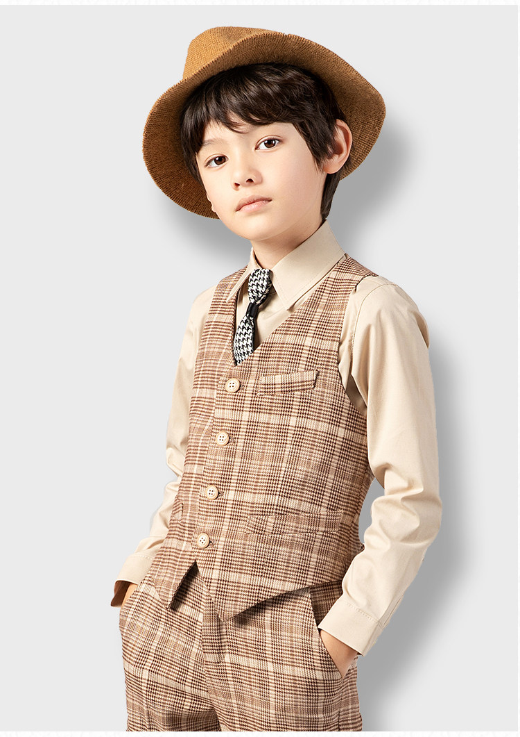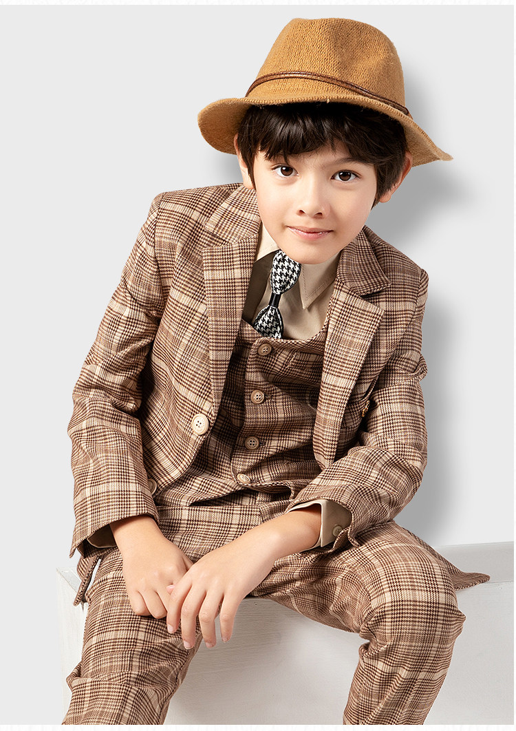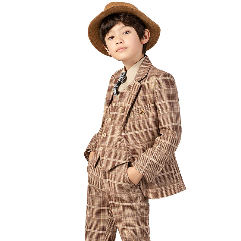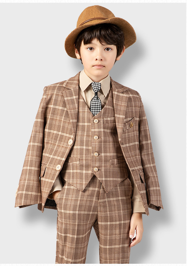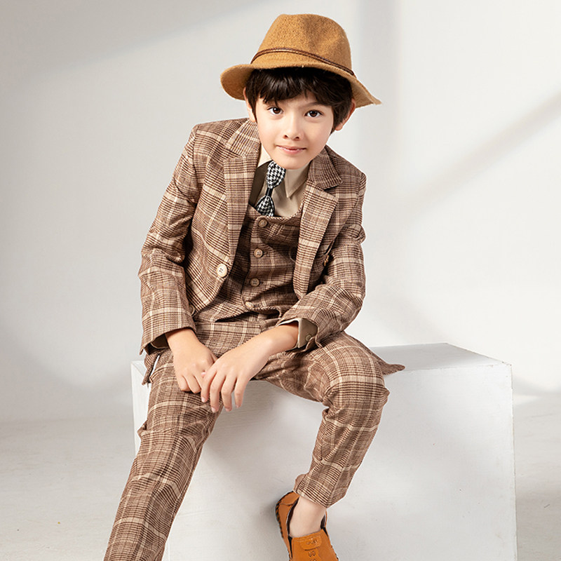 Детский желтовато-коричневый цветной комплект, костюм мальчика цветочника, пианино, наряд для музыкальных выступлений