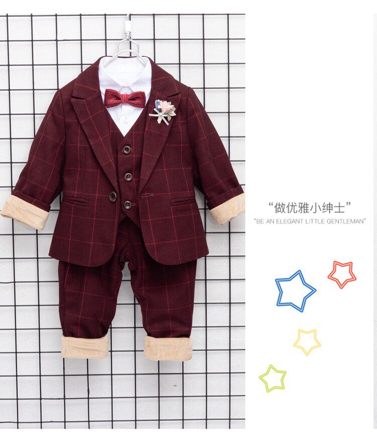 Детский классический костюм, комплект, пианино для мальчиков, наряд для музыкальных выступлений, платье, 3 предмета, в корейском стиле, увеличенная толщина