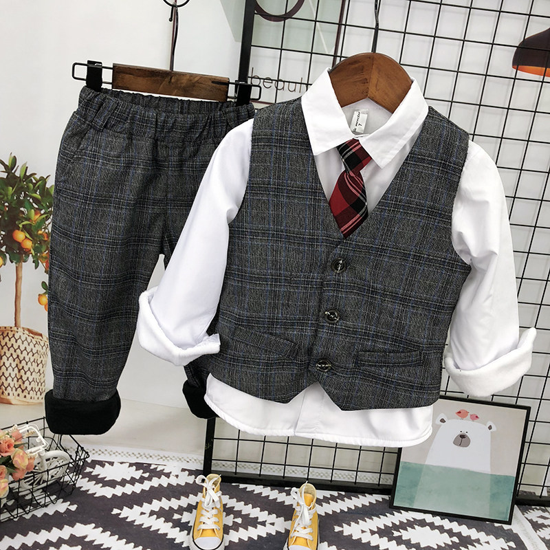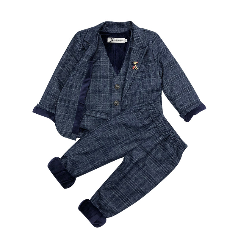 Флисовый костюм для мальчиков, зимний комплект, детское платье, 3 предмета, 2023, в западном стиле