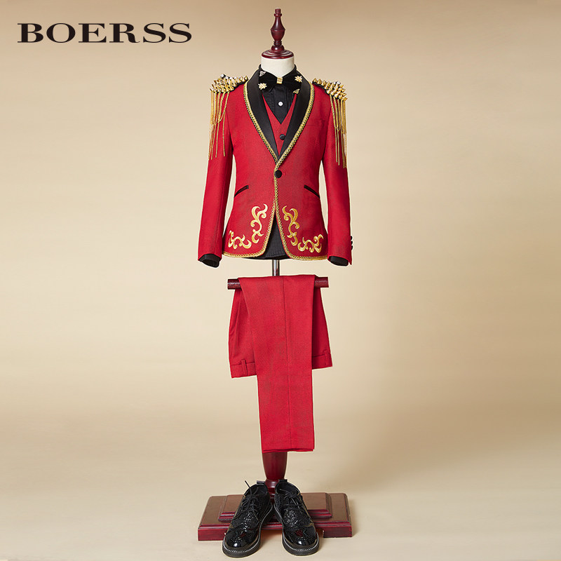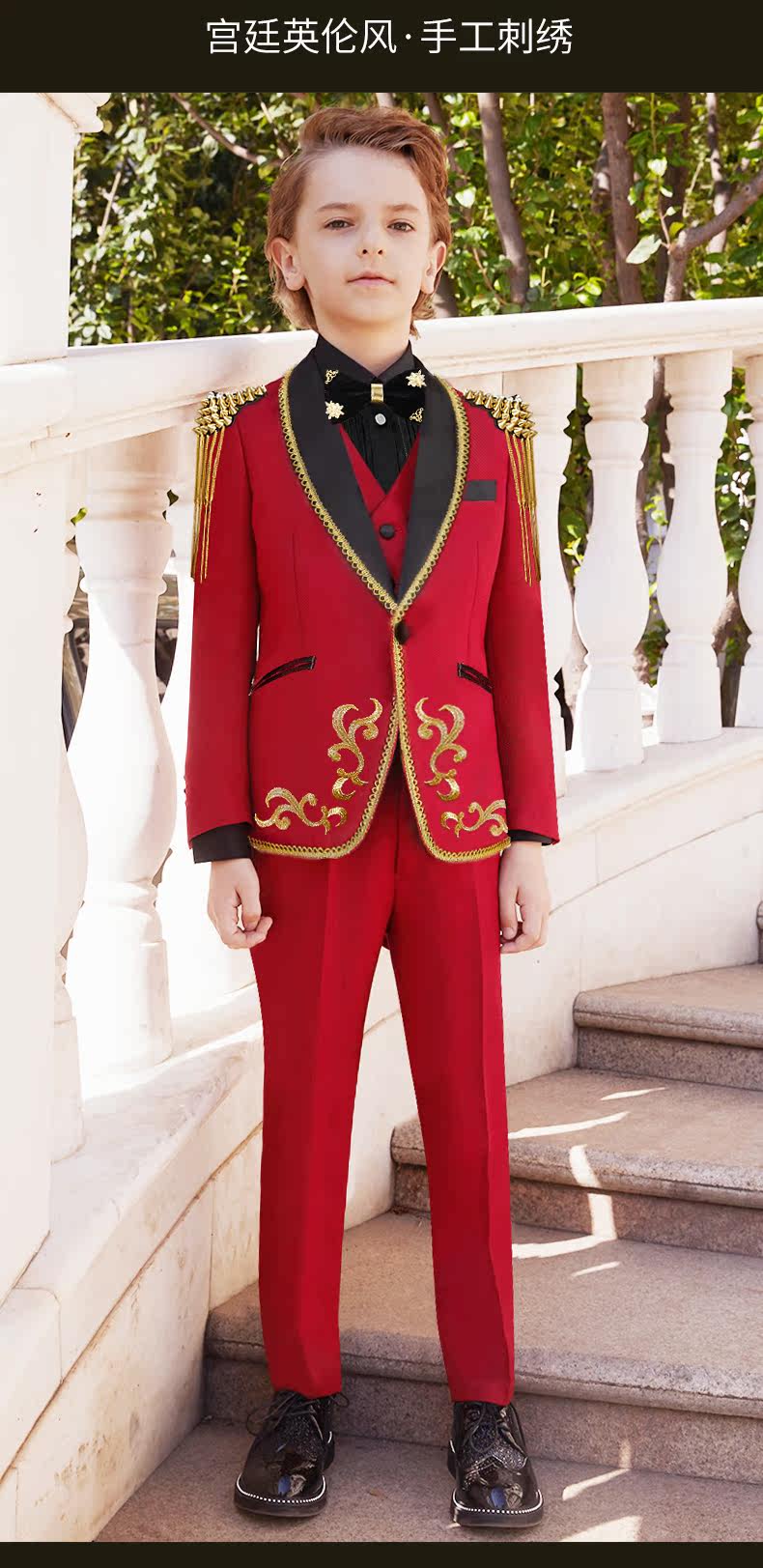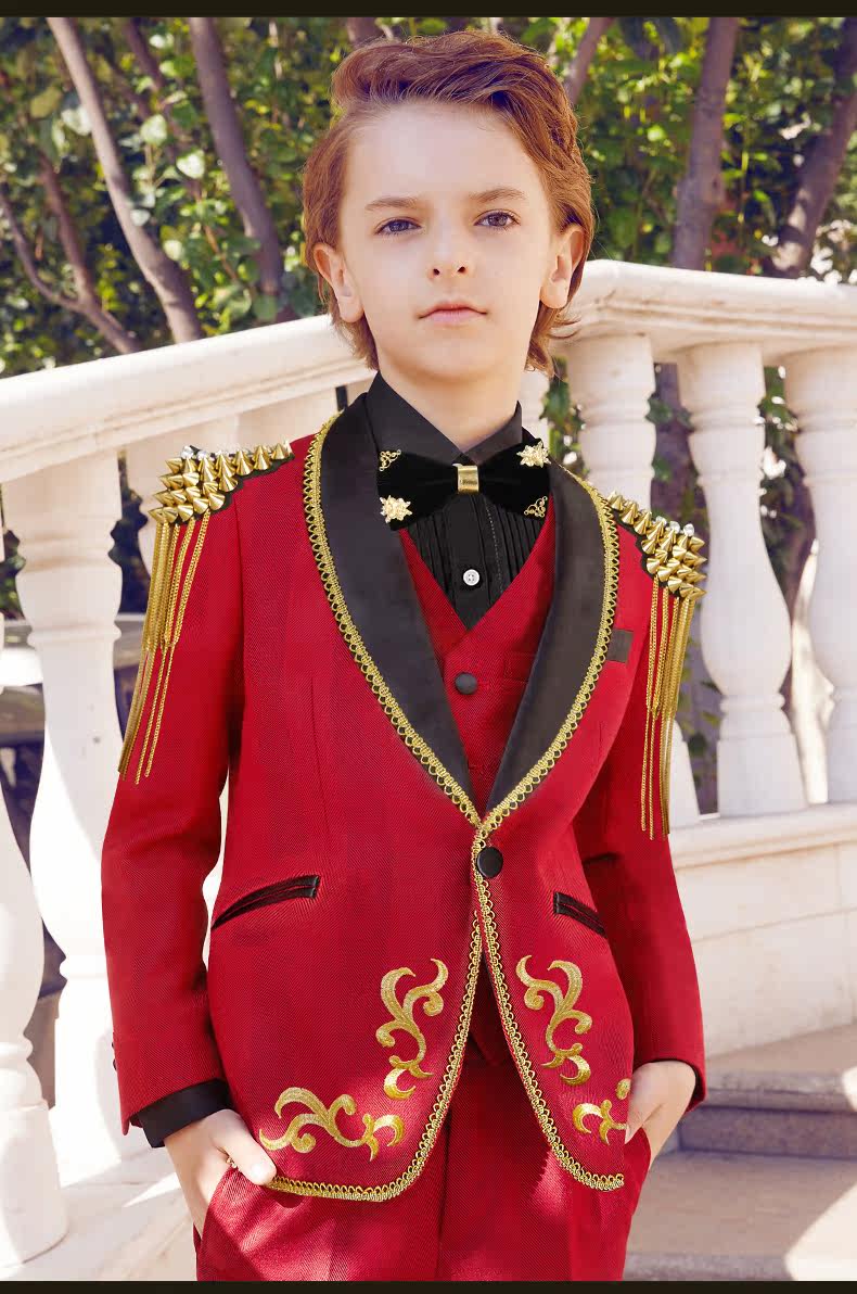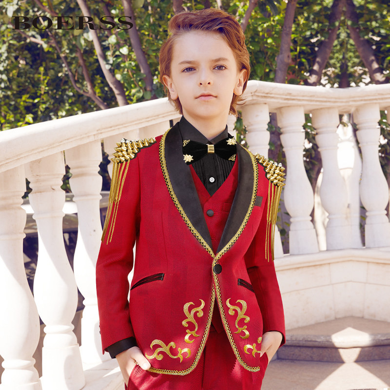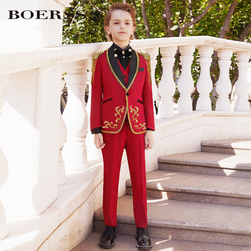 BOERSS Детский костюм для мальчиков, комплект, платье, подходит для подростков, с вышивкой