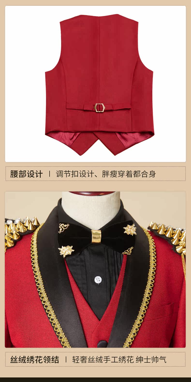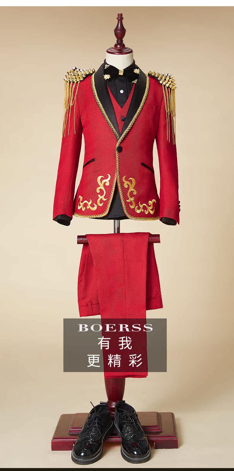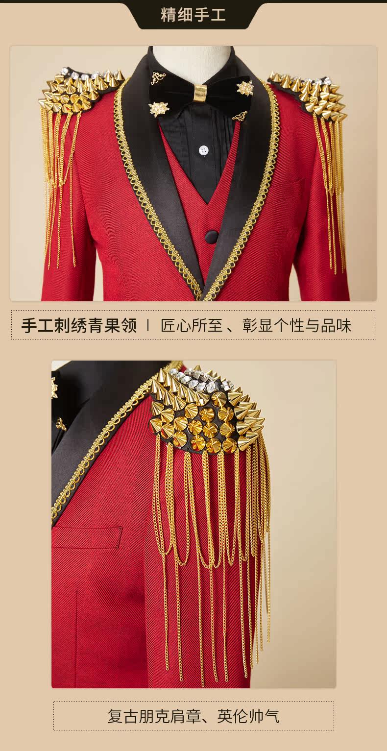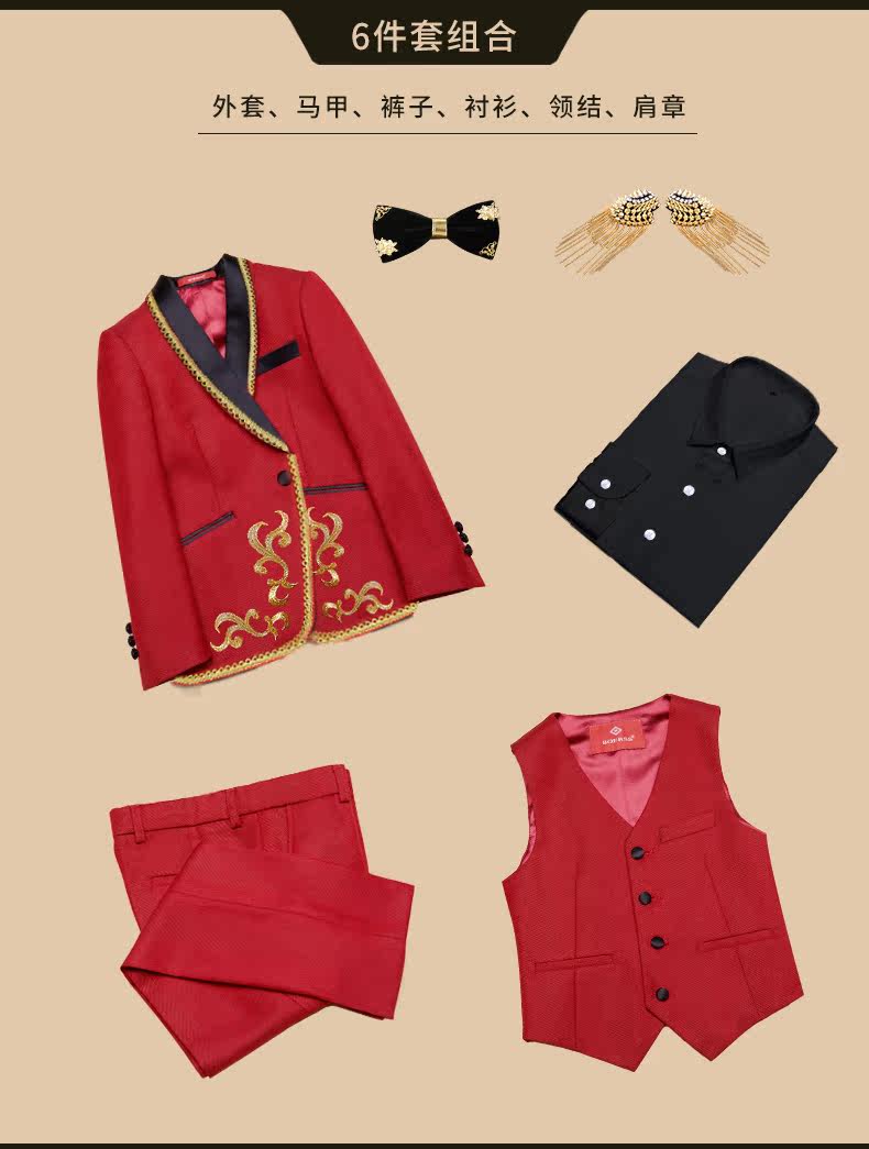 BOERSS Детский костюм для мальчиков, комплект, платье, подходит для подростков, с вышивкой