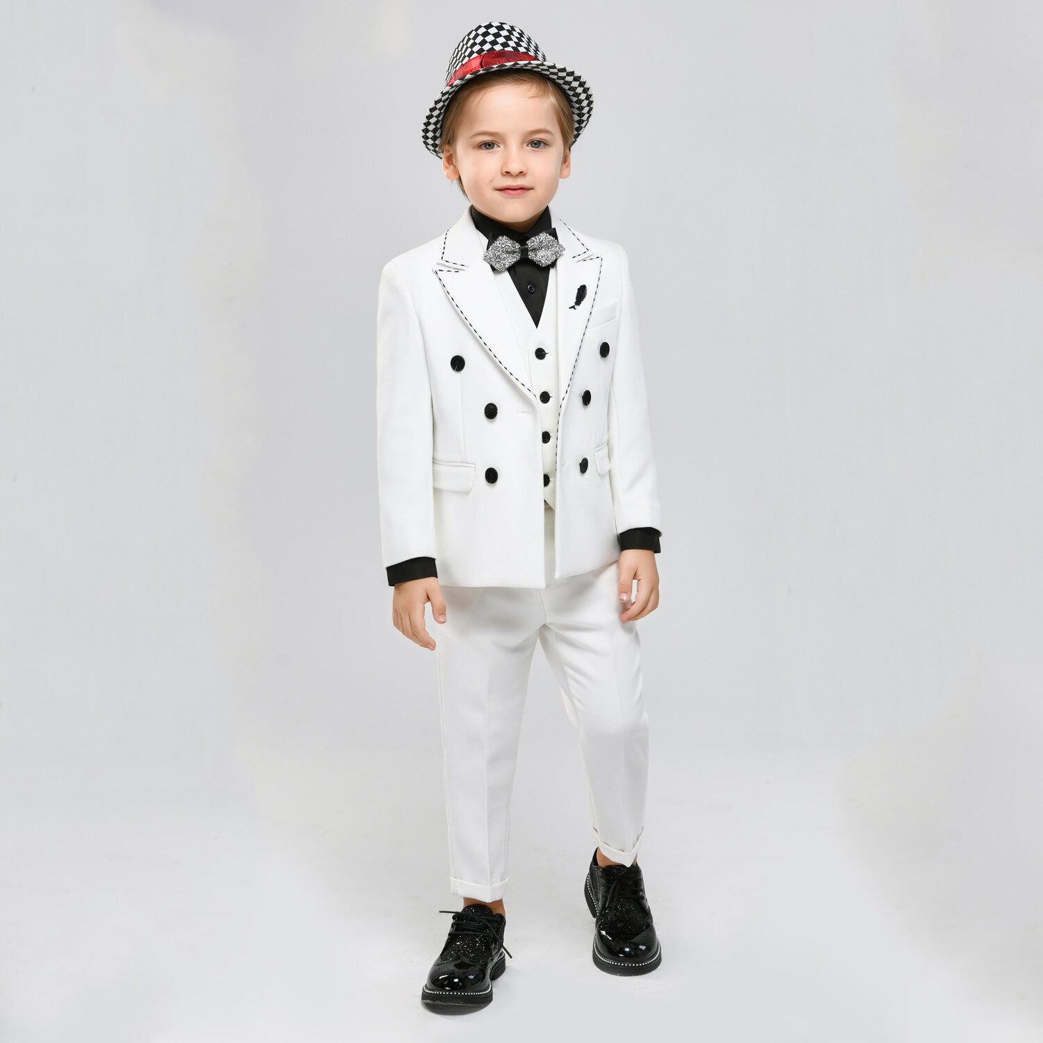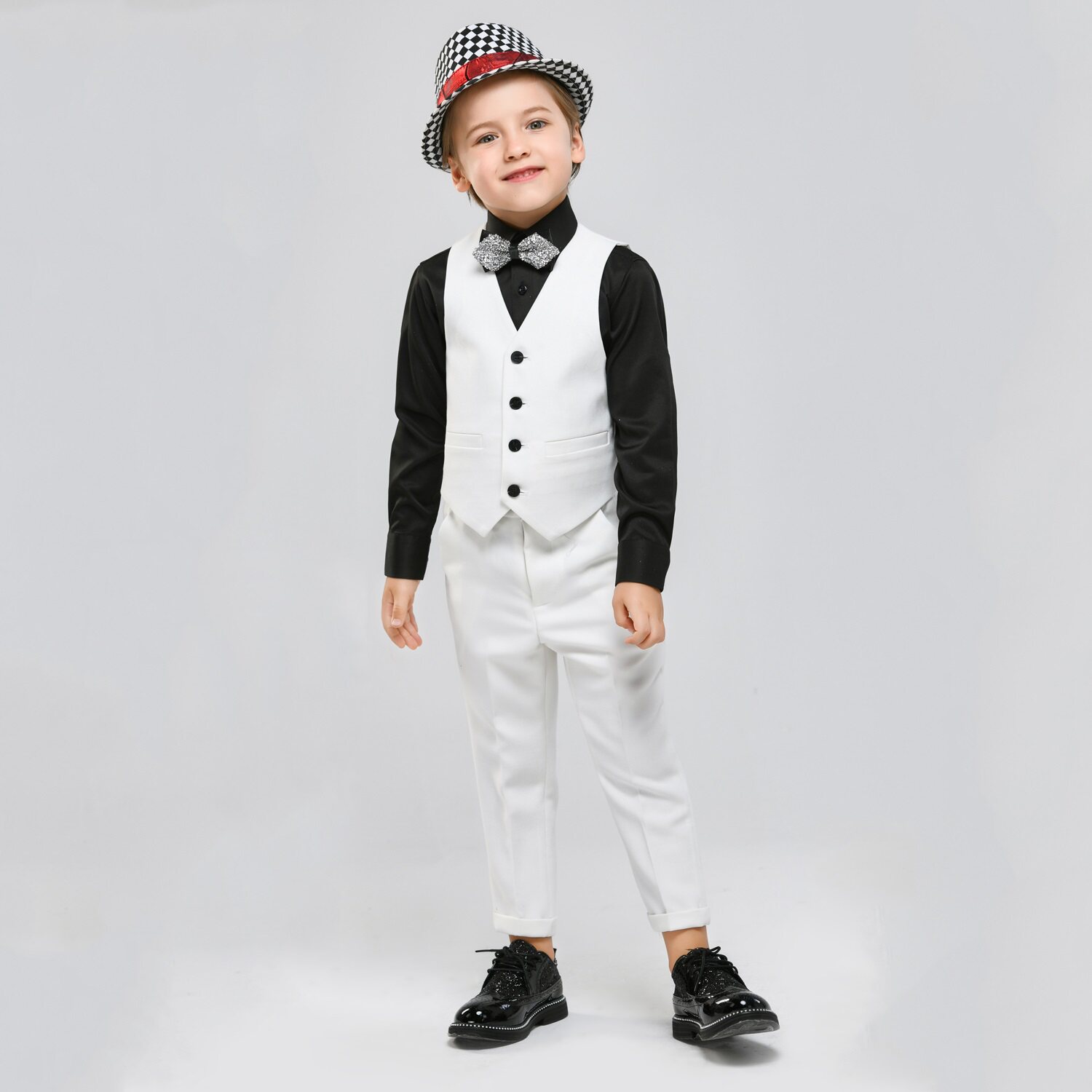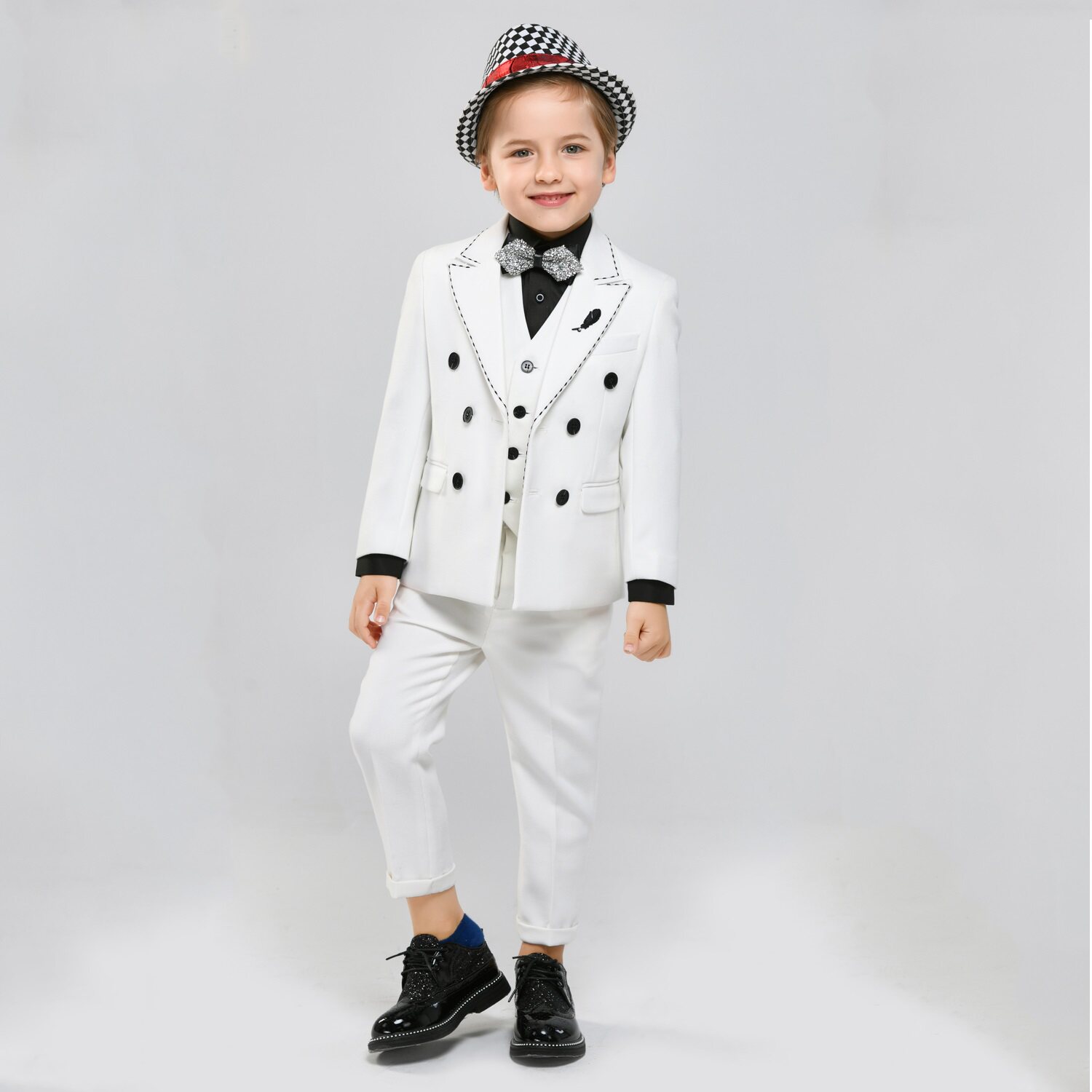 Детское белое платье девочки цветочницы, костюм мальчика цветочника, куртка, белая одежда, в западном стиле