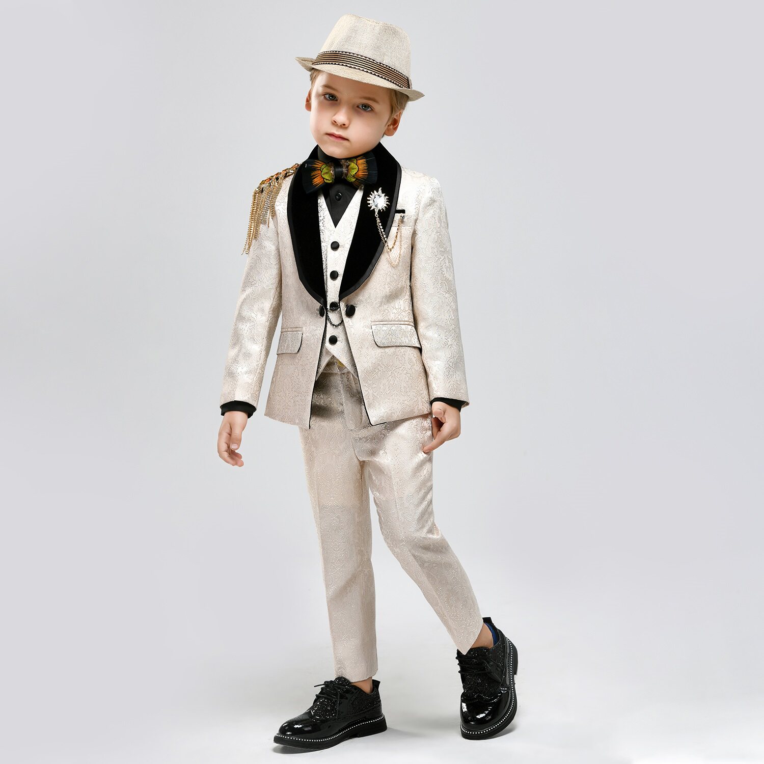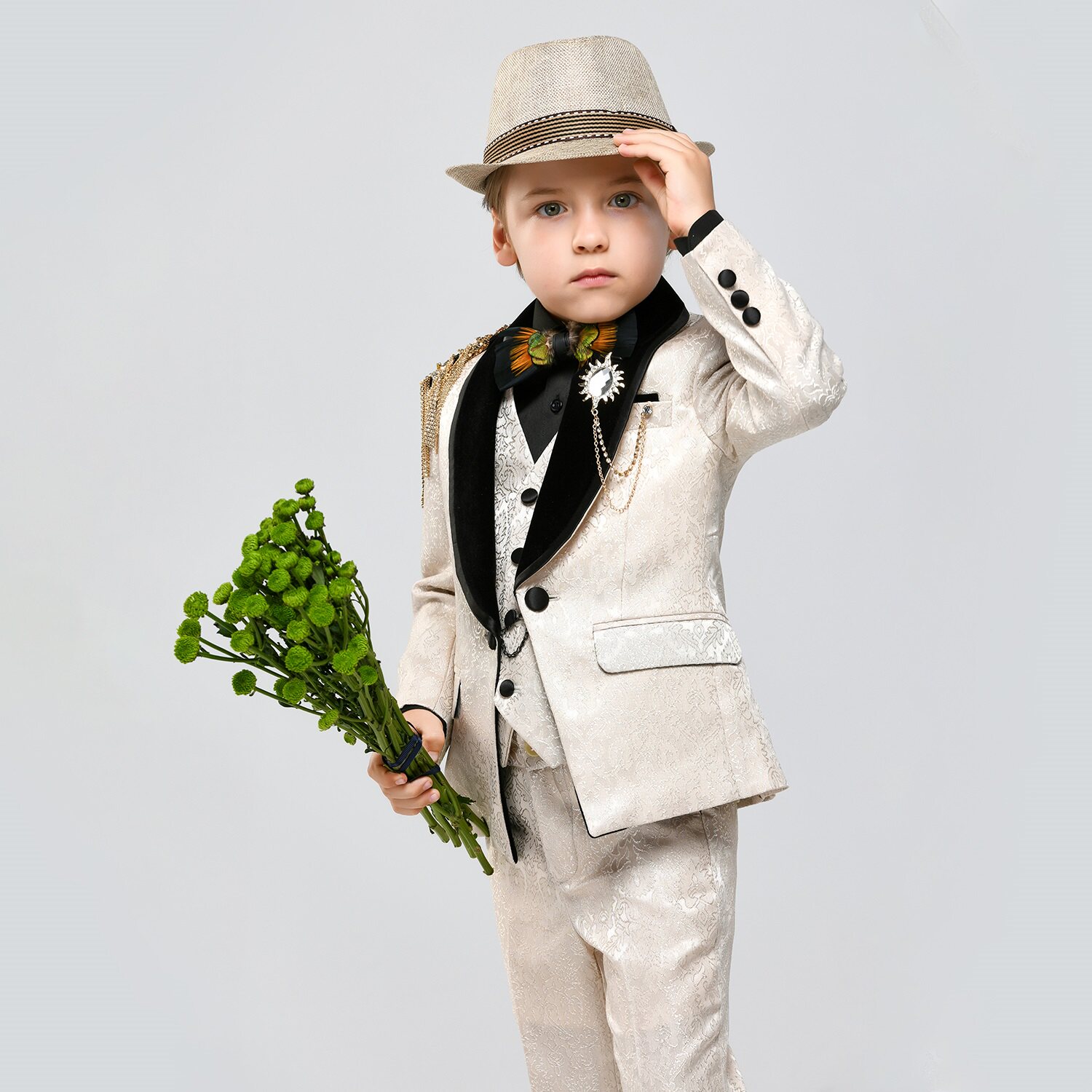 Цвет: Комплект, куртка, жилет, штаны, брошь, 4 предмета, Комплект, куртка, жилет, штаны, рубашка, галстук-бабочка, брошь, Комплект, куртка, жилет, штаны, рубашка, галстук-бабочка, брошь