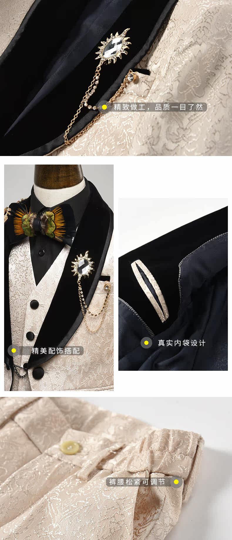 • Комплект, куртка, жилет, штаны, рубашка, галстук-бабочка, брошь