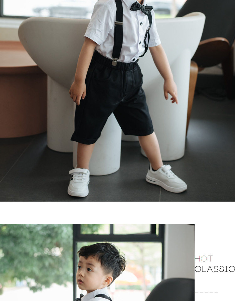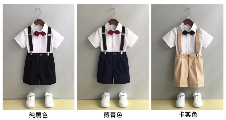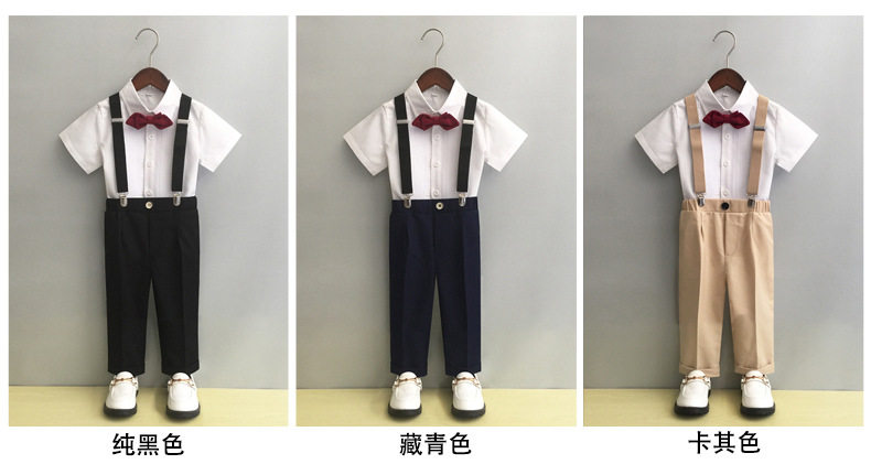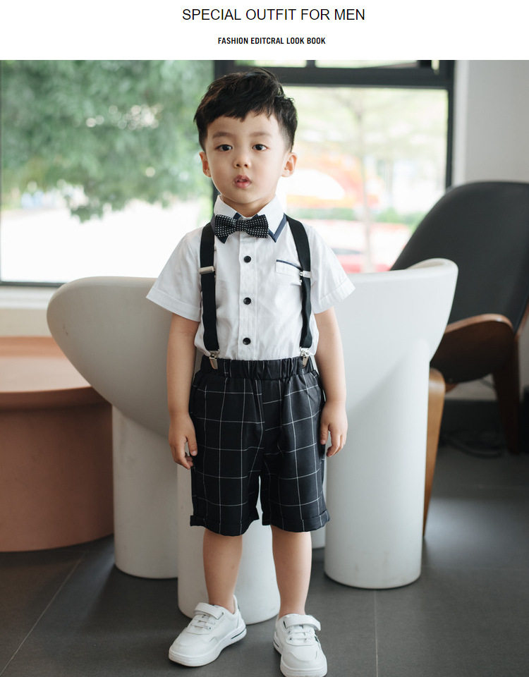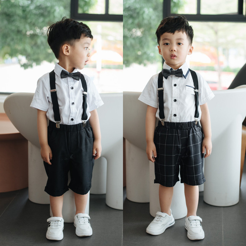 Платье для мальчиков, летний детский комплект, детская черная рубашка, комбинезон для детского сада, костюм