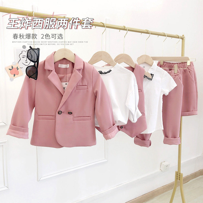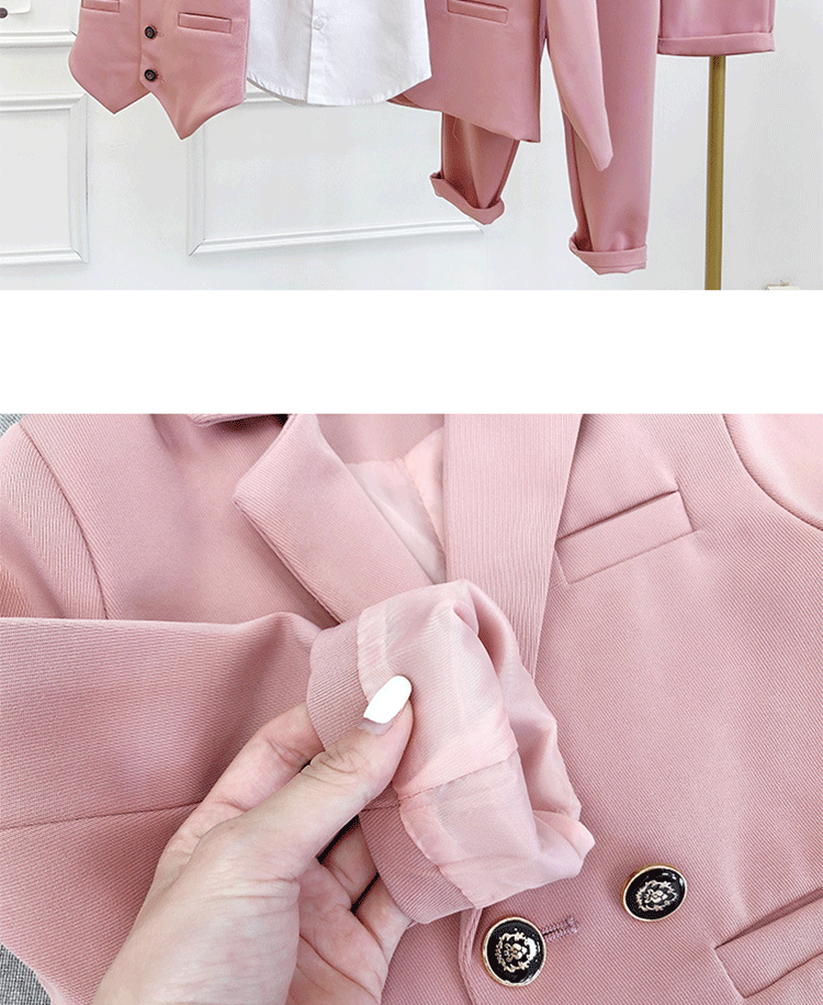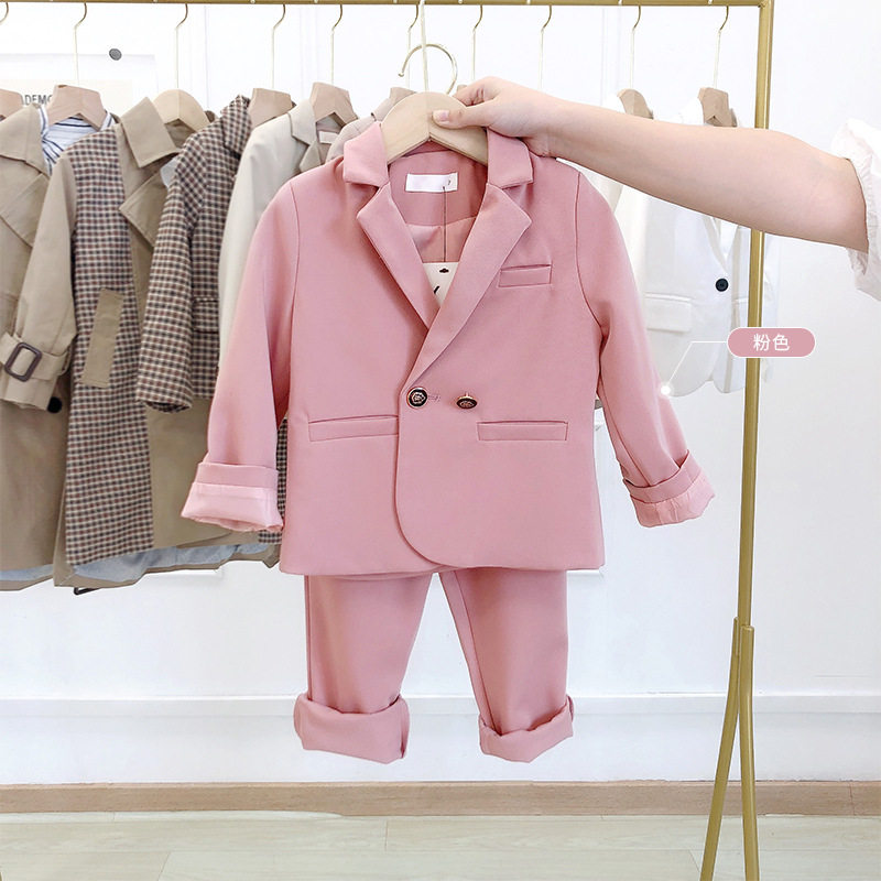 - Розовый пиджак классического кроя, штаны