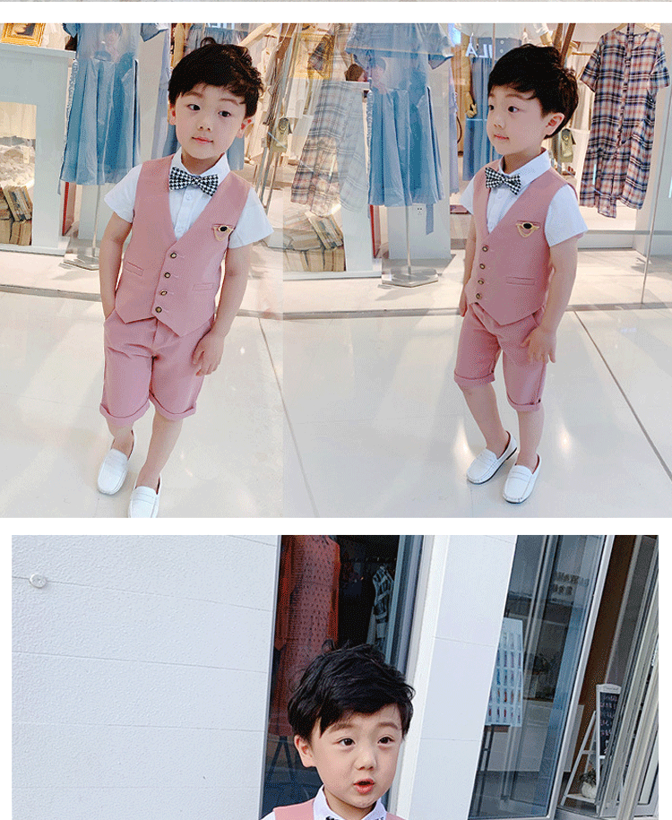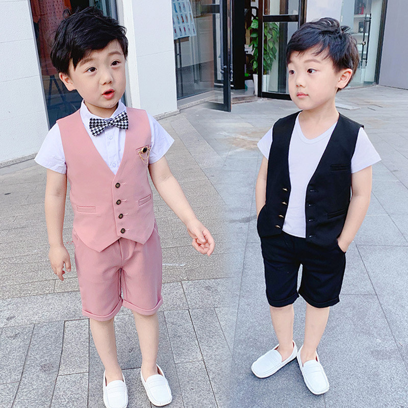 Костюм мальчика цветочника, летний классический костюм для отдыха, жилет для мальчиков, детский комплект, платье, в западном стиле, 3 предмета