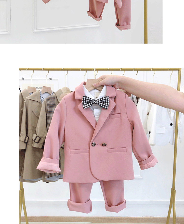 - Розовый пиджак классического кроя, штаны, рубашка