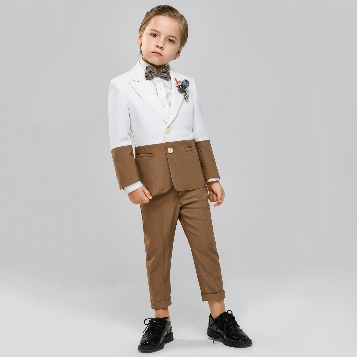 - Комплект, куртка, штаны, рубашка, брошь, галстук-бабочка