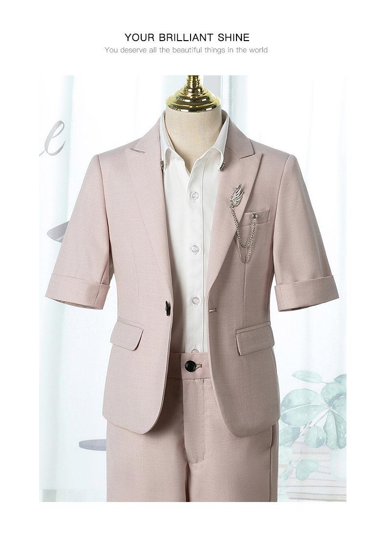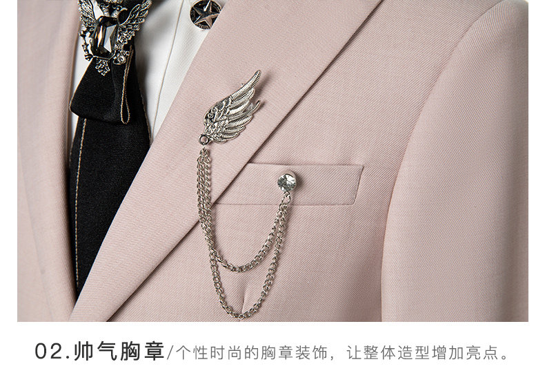 - Комплект, куртка, штаны, белая рубашка, галстук, брошь