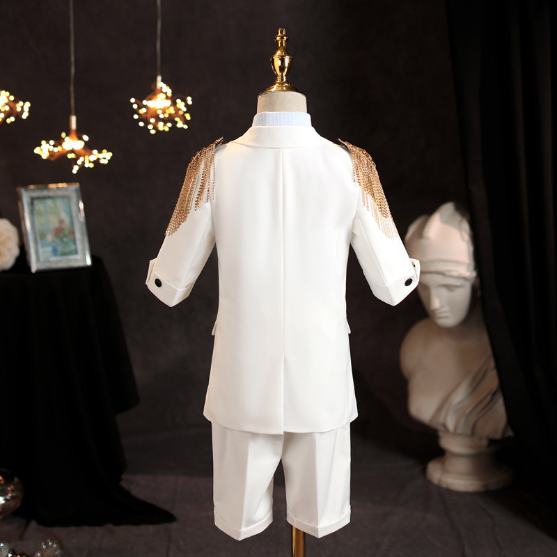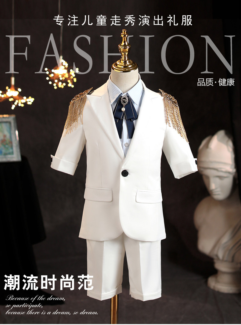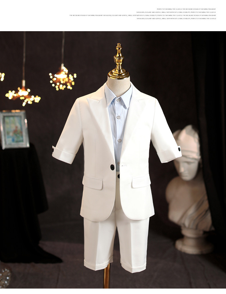 Детский летний комплект, костюм мальчика цветочника, белый наряд для музыкальных выступлений, короткий рукав