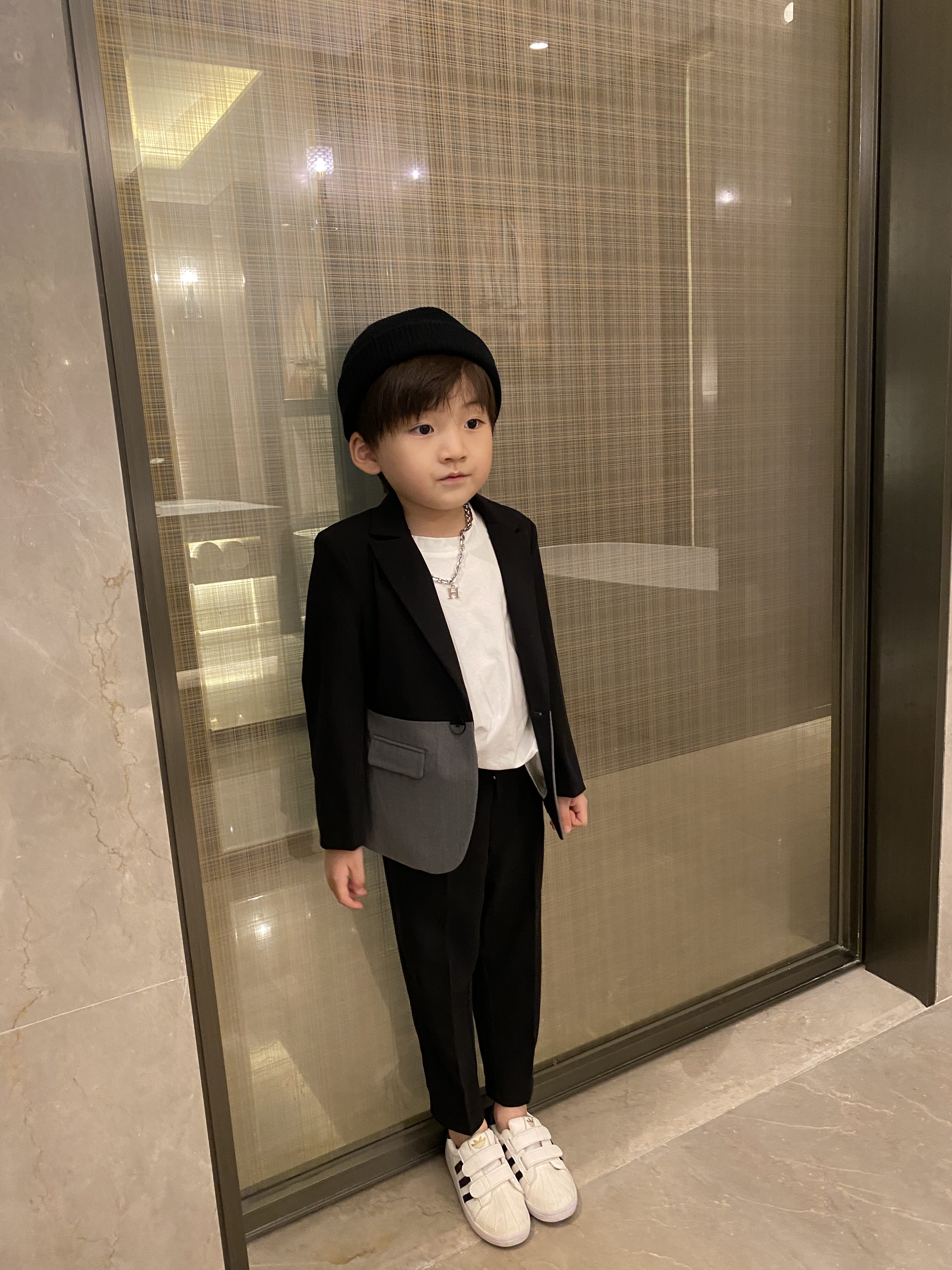 | Цвет: | Черно-серый костюм в стиле пэчворк, Комплект из двух предметов: черно-серый сращенный костюм + белая футболка, Костюм, рубашка, комплект, галстук-бабочка, Черно-серый сращенный костюм + белая футболка + черные брюки, Черно-серый лоскутный костюм + белая рубашка + черные брюки, свободный галстук-бабочка. |