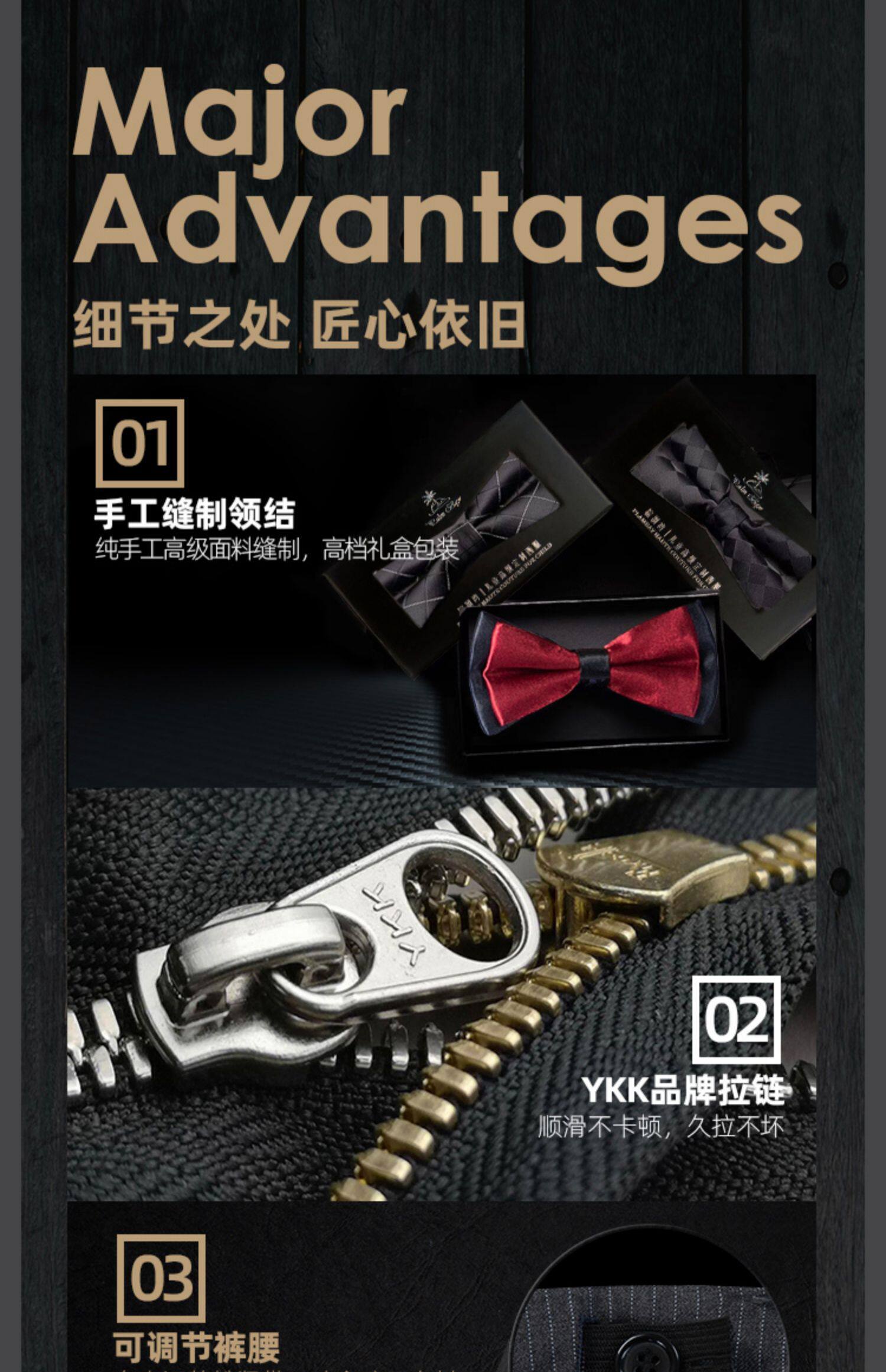 - Классический черный комплект, куртка, жилет, рубашка, штаны, галстук-бабочка