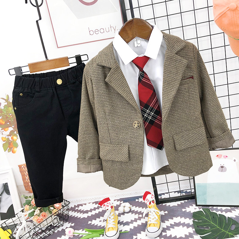Осенний детский костюм для мальчиков, платье для отдыха, куртка, в западном стиле, в британском стиле
