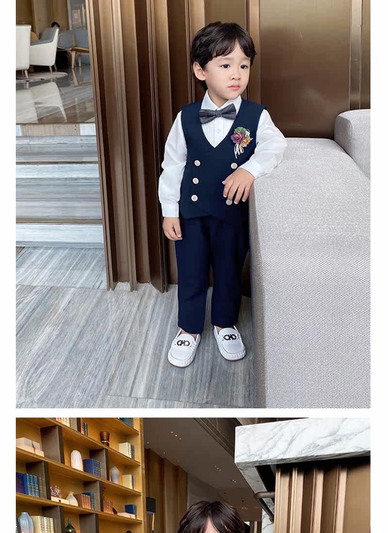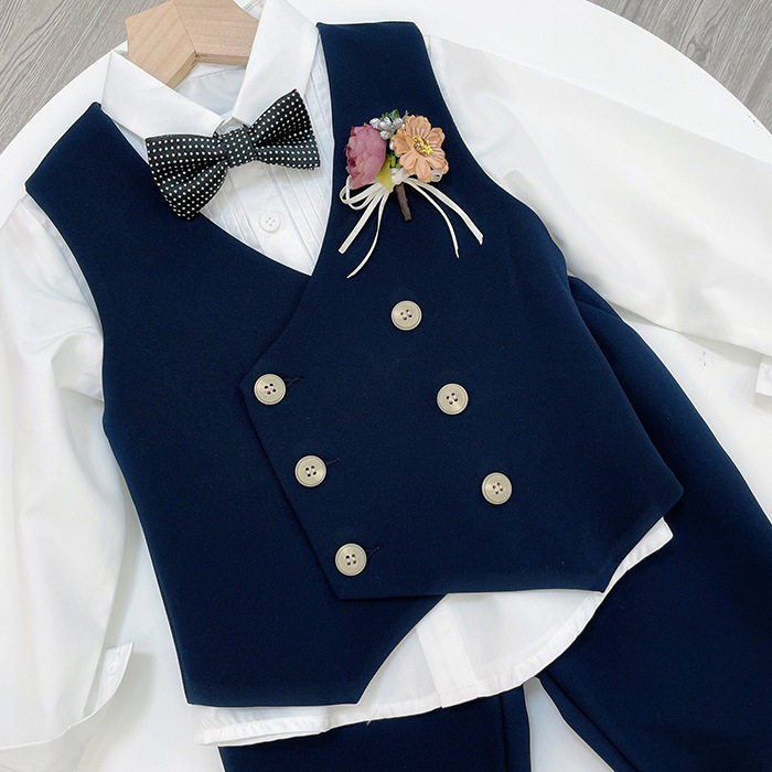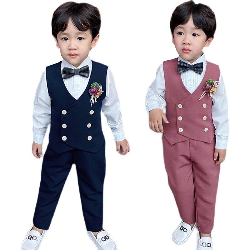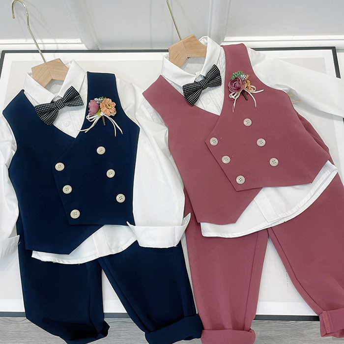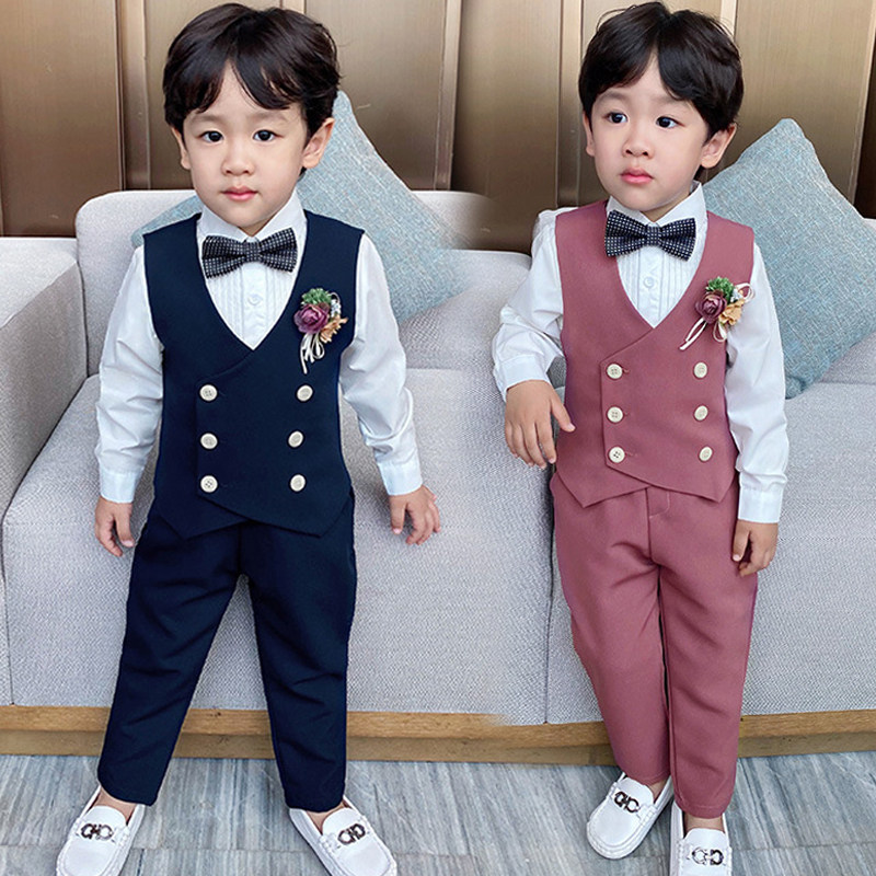 Костюм мальчика цветочника, осенний пиджак классического кроя, детский жилет, комплект, детское свадебное платье, в западном стиле, в корейском стиле