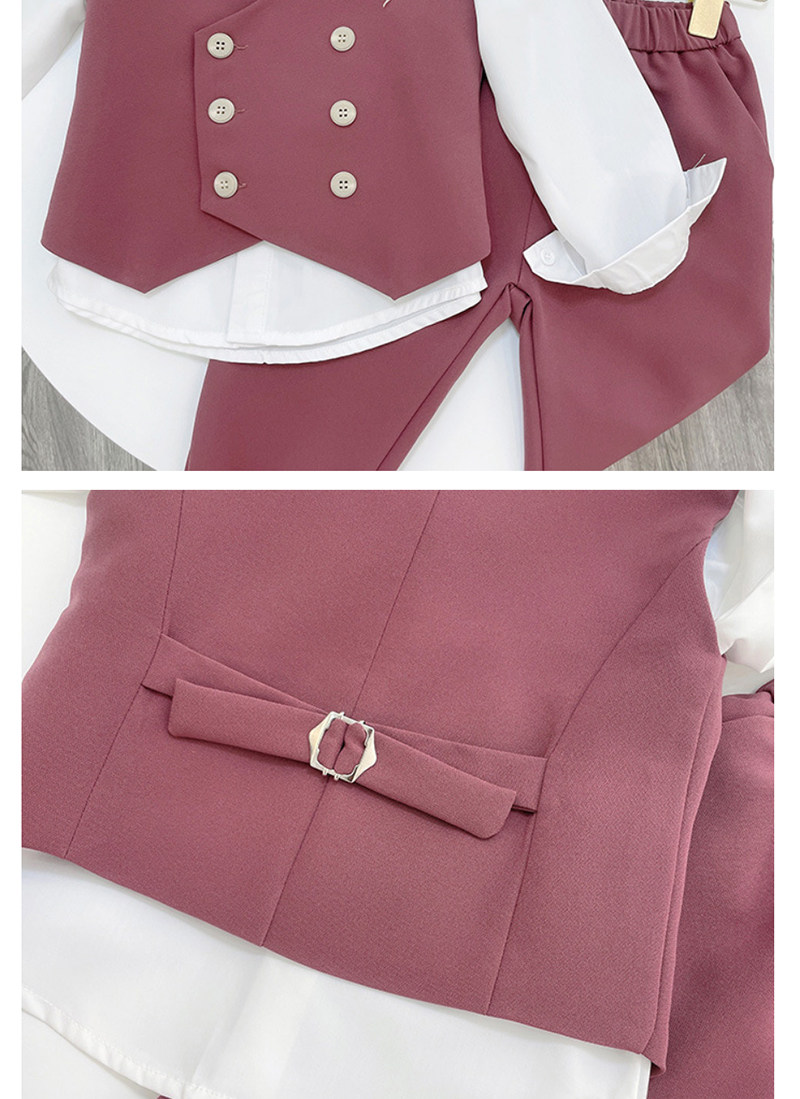 - Розовый жилет, штаны, рубашка