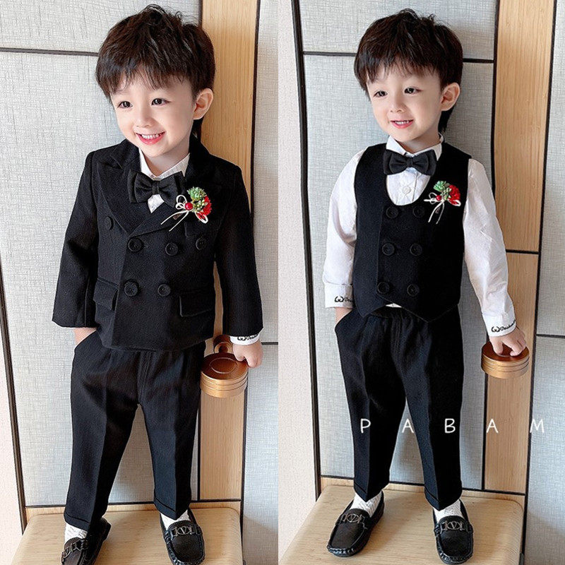 Детский весенний классический костюм для мальчиков, черный комплект, детское платье, 3 предмета, в британском стиле, подарок на день рождения, в западном стиле