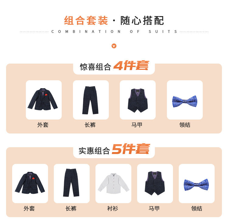 Детский классический костюм для мальчиков, платье, жилет, комплект, куртка, 3 предмета