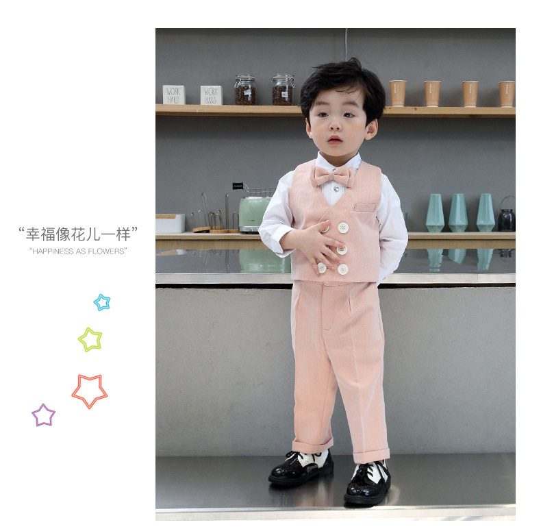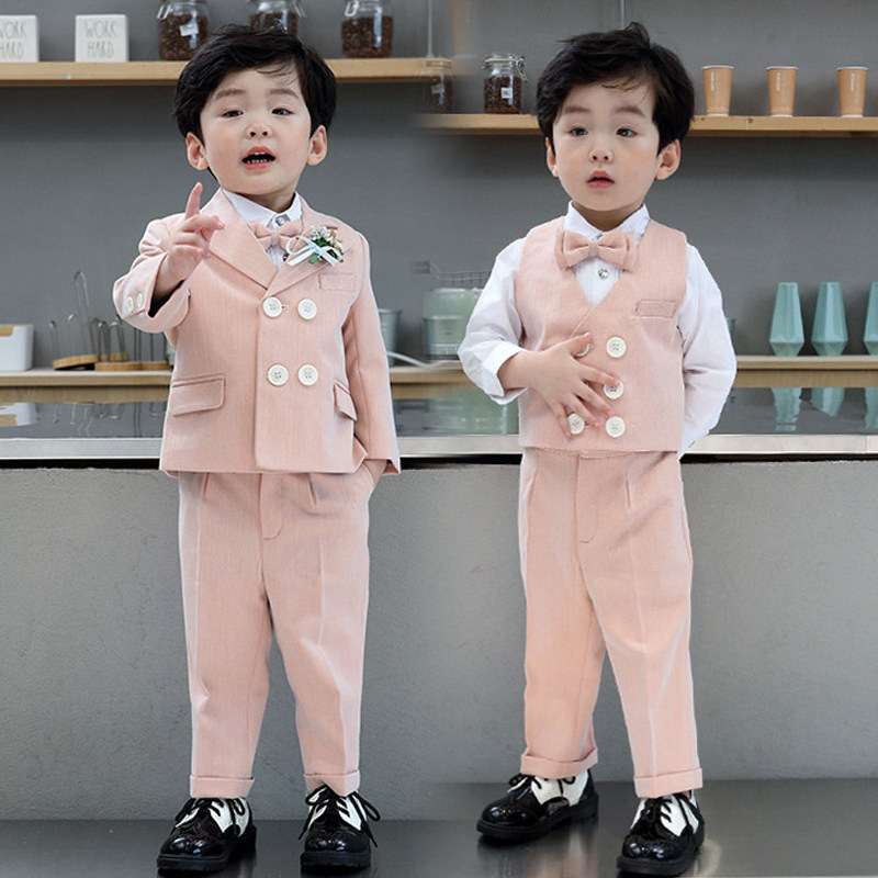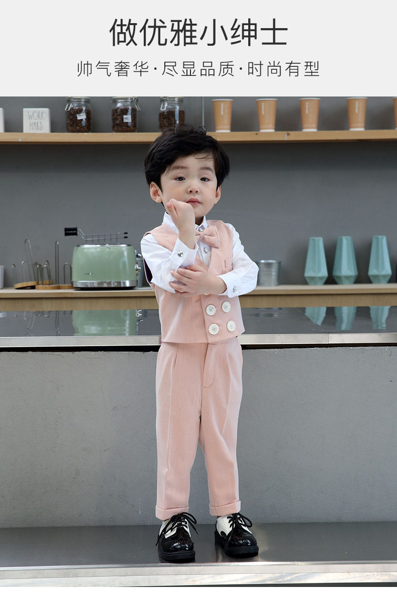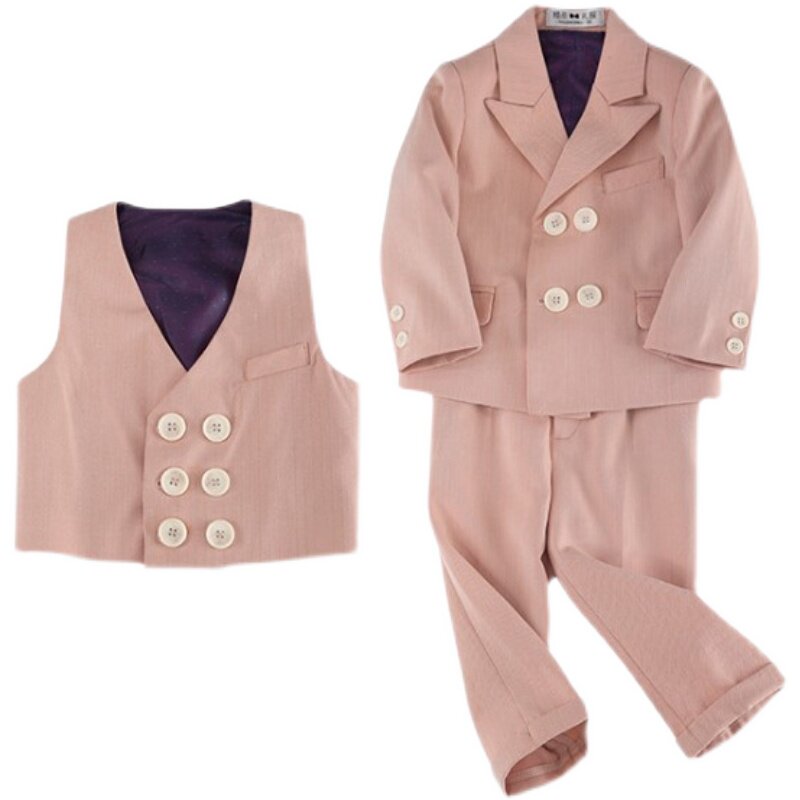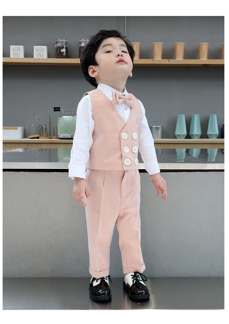 Розовый осенний детский классический костюм для мальчиков, платье, жилет, комплект, наряд на выход, 3 предмета