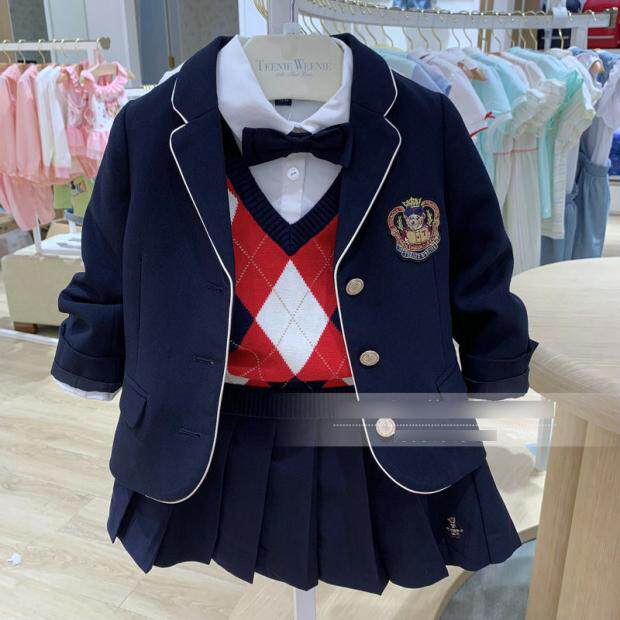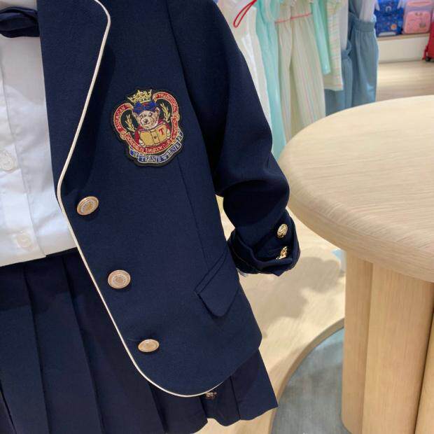 Венно-синий хлопко-полиэфирский стиль для девочек пиджак медведь бренд Tkjk213871d весна и осенний костюм
